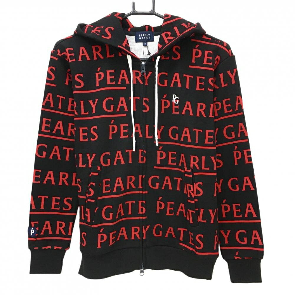 【新品】パーリーゲイツ ジップパーカー 黒×レッド ロゴ総柄 胸元刺しゅう レディース 0(S) ゴルフウェア PEARLY GATES 16,170 ~