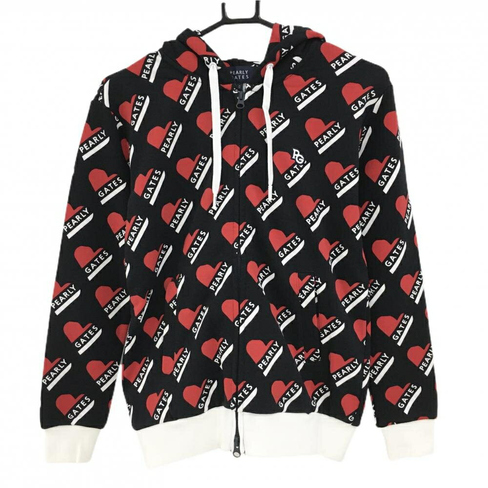 【新品】パーリーゲイツ ジップパーカー 黒×レッド ハートロゴ総柄 胸元刺しゅう レディース 0(S) ゴルフウェア PEARLY GATES 16,170 ~