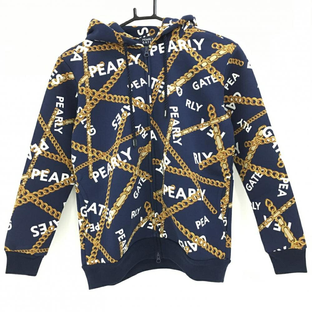 【新品】パーリーゲイツ ジップパーカー ネイビー×ゴールド チェーン柄 ロゴ刺しゅう レディース 0(S) ゴルフウェア PEARLY GATES 17,902 ~