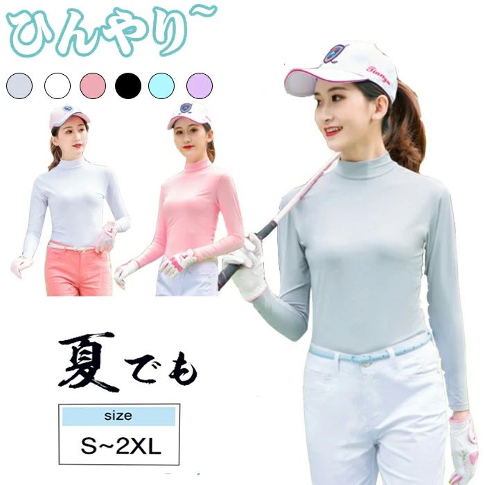 ゴルフインナー レディース シャツ 長袖 UVカット 接触冷感 スポーツウェア ひんやり インナーシャツ ストレッチ 吸汗速乾 ハイネック 日焼け止め 運動 アウトドア 軽量 夏 日焼け対策 7,960 ~