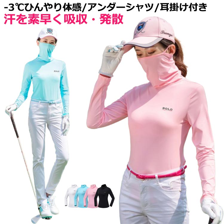 インナーシャツ レディース 長袖 接触冷感 夏用 ヒンヤリ 襟とマスクが一体型 ゴルフウェア フェイスガー UVカット ゴルフシャツ 3,800 ~