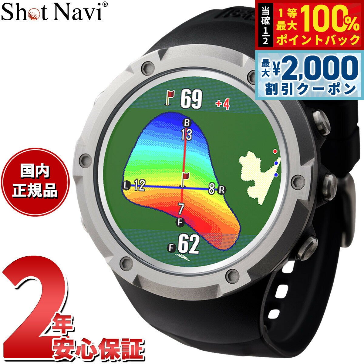 腕時計型ゴルフナビ最大サイズ1.4インチ液晶ディスプレイ。 Dynamic Green Eye、フェアウェイナビ(特許取得)、オートメジャー、オートビューチェンジ、グリーンディレクション、レイアップナビ機能搭載。 MIPカラー反射型液晶。 高精度測位みちびきL1S、ガリレオ、グロナス対応。 腕時計型GPSゴルフナビ。 日本プロゴルフ協会、日本プロキャディ協会推薦品。 国内100%&海外のゴルフ場に対応。 商品名ショットナビ Shot Navi Crest2 クレスト2 腕時計型 GPS ゴルフナビ 距離測定器 距離計測器 ブラック商品番号CREST2-Bブランドショットナビ Shot Naviムーブメントクォーツ(充電式リチウムイオン電池) 【本体仕様】■ディスプレイ:1.4インチ MIPカラー反射型液晶■バッテリー:リチウムポリマーバッテリー■防水:IPX7(生活防水程度)■フル充電時間:2.5時間(PC経由時)■使用時間GPS使用時:最大約9時間時計モード:約20日※バッテリーの連続使用時間は使用機能・期間などにより変化します。 ■データ更新:PC USBストレージモードによるデータ更新■マルチ衛星対応■Dynamic Green Eye■フェアウェイナビ■エイム機能■リアルディスタンス■レイアップナビ■オートメジャー■オートビュー■目安距離■高低差■推奨番手■飛距離計測■地点登録■コースレイアウト■ハザード表示■ドライビングサークル■レイアップサークル■同心円■スコアカード■アプリ連動■競技モード■どでか文字■通知機能■歩数系■Bluetooth■海外対応■国内100%収録■Made in Japan風防素材強化ガラスケース素材PC-ABSケースサイズ51.6×46mmケース厚13.7mmバンド素材シリコンバンド留金タイプ尾錠バンド幅20mm腕周り(最大)21cm本体重量63g保証期間メーカー1年間保証付属充電/通信用USBケーブルType-C、クイックスタートガイド兼保証書、ウォッチケースその他のサービスショットナビ Shot Navi Crest2 クレスト2 腕時計型 GPS ゴルフナビ 距離測定器 距離計測器 ブラック腕時計型ゴルフナビ最大サイズ1.4インチ液晶ディスプレイ。 Dynamic Green Eye、フェアウェイナビ(特許取得)、オートメジャー、オートビューチェンジ、グリーンディレクション、レイアップナビ機能搭載。 MIPカラー反射型液晶。 高精度測位みちびきL1S、ガリレオ、グロナス対応。 腕時計型GPSゴルフナビ。 日本プロゴルフ協会、日本プロキャディ協会推薦品。 国内100%&海外のゴルフ場に対応。