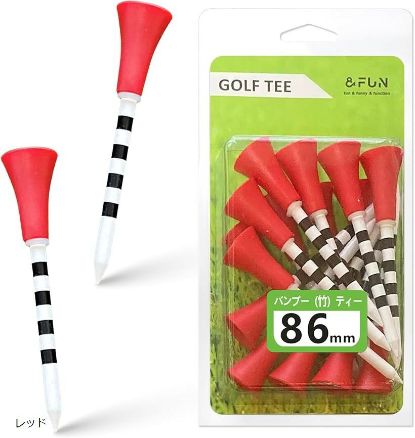 アンドファン ゴルフティー バンブー 竹製ティー ラバーヘッドロングティー ボールが乗せやすい 86mm 15本入 (レッド) 1,180 ~