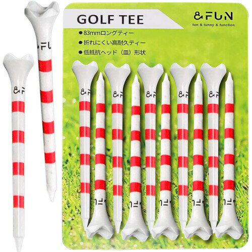 &FUN(アンドファン) ゴルフティー低抵抗ヘッド ロングティー 83mm 10本入 折れにくい高耐久 摩擦軽減 飛距離アップ (ストライプ赤) 2,007 ~