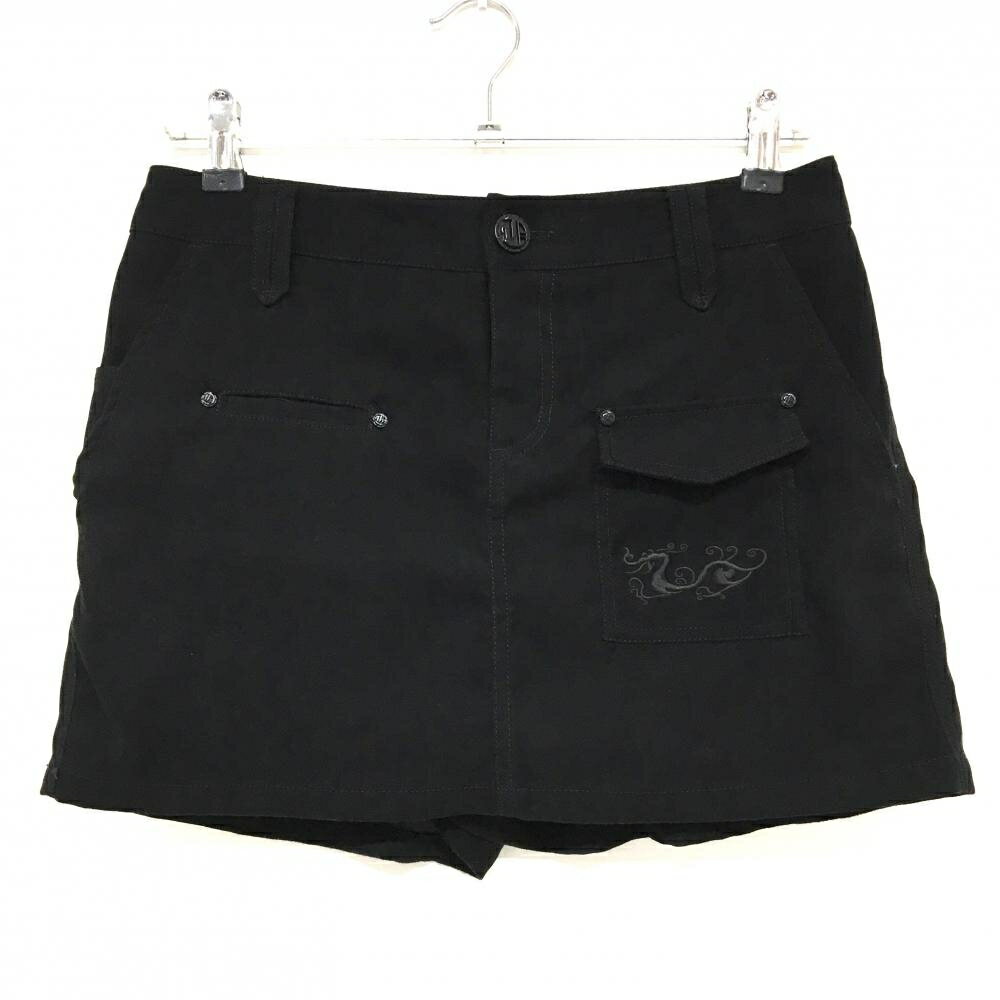 【美品】ダンスウィズドラゴン キュロットスカート 黒 ロゴ刺しゅう 複数ポケット レディース 2(M) ゴルフウェア Dance With Dragon 7,335 ~