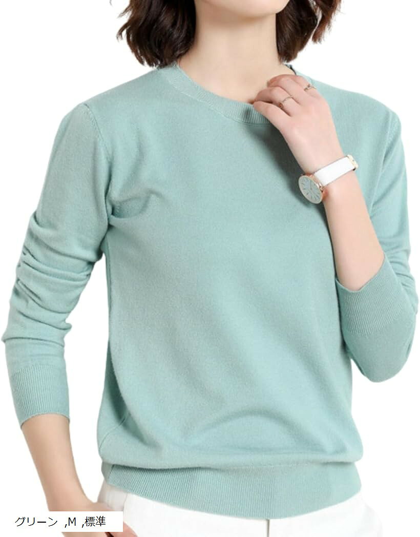 セーター レディース 秋冬 春 ニット トップス カットソー 長袖 ニットセーター オフィスカジュアル 薄手 スーツ インナー 大きいサイズ 丸首 クルーネック プルオーバー グリーン M 標準 2,480 ~