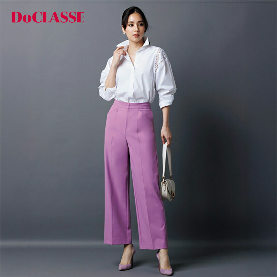 素材ナイロン86%・ポリウレタン14%洗濯表示洗濯機可サイズ詳細サイズパンツ裾幅股下股上わたりウエストヒップ7号25.57027.53065939号26702831689611号26.57028.532719913号277029337410215号27.57029.53477105・色:ラベンダー・注意事項:モニターの発色具合により色合いが異なる場合がございます。 【関連キーワード】 DoCLASSE ドゥクラッセ 大人の服 30代 40代 50代 レディース メンズ きれいめ 大人カジュアル オフィスカジュアル 通勤 旅行 体型カバー 着痩せ ストレッチ 洗える 防シワ 速乾 接触冷感 UVカット 撥水 保温 裏起毛 軽量 セットアップ ワンピース シャツ ブラウス Tシャツ カットソー ニット セーター カーディガン パンツ スカート コート ダウン ブルゾン ジャケット ベスト バッグ ゴルフ マジカルサーモ Doヒート メーカー希望小売価格はメーカーサイトに基づいて掲載しています4WAYストレッチ・立体セミワイドパンツ360°伸びるから、ノンストレスでモダンに決まる。 4WAYダブル・立体セミワイドラベンダー【上品にもスポーティにも決まるドライな質感の360°ストレッチ素材】ストレッチする合繊をバランスよく組み合わせ、驚異の360°ストレッチを叶えた新素材。 シャリッとしたドライな質感とほんのり光沢感は、ドレッシーな装いにもカジュアルにも着こなせるマルチな魅力。 【脚を通すだけで美ボディに。 センター切り替えの構築カッティング】 お腹まわりをすっきり抑える切替ウエストベルト、センター切替の立体カッティング、腰のラインをすっきり見せる斜めポケットなど、ほっそり魅せにとことんこだわった大人デザイン。 ウエスト後ろはゴム仕立てで、快適さと美脚を両立しました。