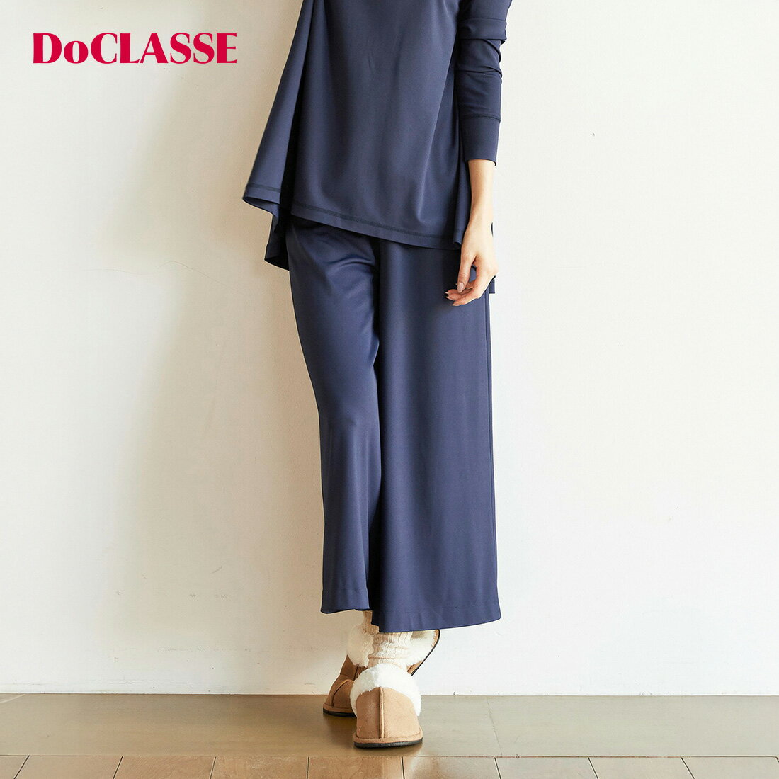 素材ポリエステル90%・ポリウレタン10%洗濯表示手洗い可サイズ詳細サイズ着丈パンツ裾幅股下わたりウエストヒップS99.589.544385330.531.557587789M10090453953323361628193L100.590.545.539.553333465668597XL1019146.540.5533536707190102XXL101.591.547.541.5533738767796108・色:ネイビー / パープルグレー / ・注意事項:モニターの発色具合により色合いが異なる場合がございます。 【関連キーワード】 DoCLASSE ドゥクラッセ 大人の服 30代 40代 50代 レディース メンズ きれいめ 大人カジュアル オフィスカジュアル 通勤 旅行 体型カバー 着痩せ ストレッチ 洗える 防シワ 速乾 接触冷感 UVカット 撥水 保温 裏起毛 軽量 セットアップ ワンピース シャツ ブラウス Tシャツ カットソー ニット セーター カーディガン パンツ スカート コート ダウン ブルゾン ジャケット ベスト バッグ ゴルフ マジカルサーモ Doヒート メーカー希望小売価格はメーカーサイトに基づいて掲載していますDoアップ・リラクシーガウチョパンツ身体が本来の力を発揮できるよう導く、コンディショニングウェア。 ネイビーパープルグレー身体に本来備わる温め、めぐる力にアプローチする、ヘルスケア発想の高機能ウェアシリーズ。 吸汗速乾に優れ、汗のにおいも気になりにくいので、ヨガやウォーキングといった、軽い運動シーンにもおすすめです。 150デニールの糸を天竺編みにした、なめらかな肌触りのチュニックはおうち時間にぴったりのアイテム。 揃いのガウチョパンツでは75デニールの細めの糸を編み、2枚の生地をつなぎあわせるダンボール構造を採用。 軽さと体型の響かないハリ感を両立させました。