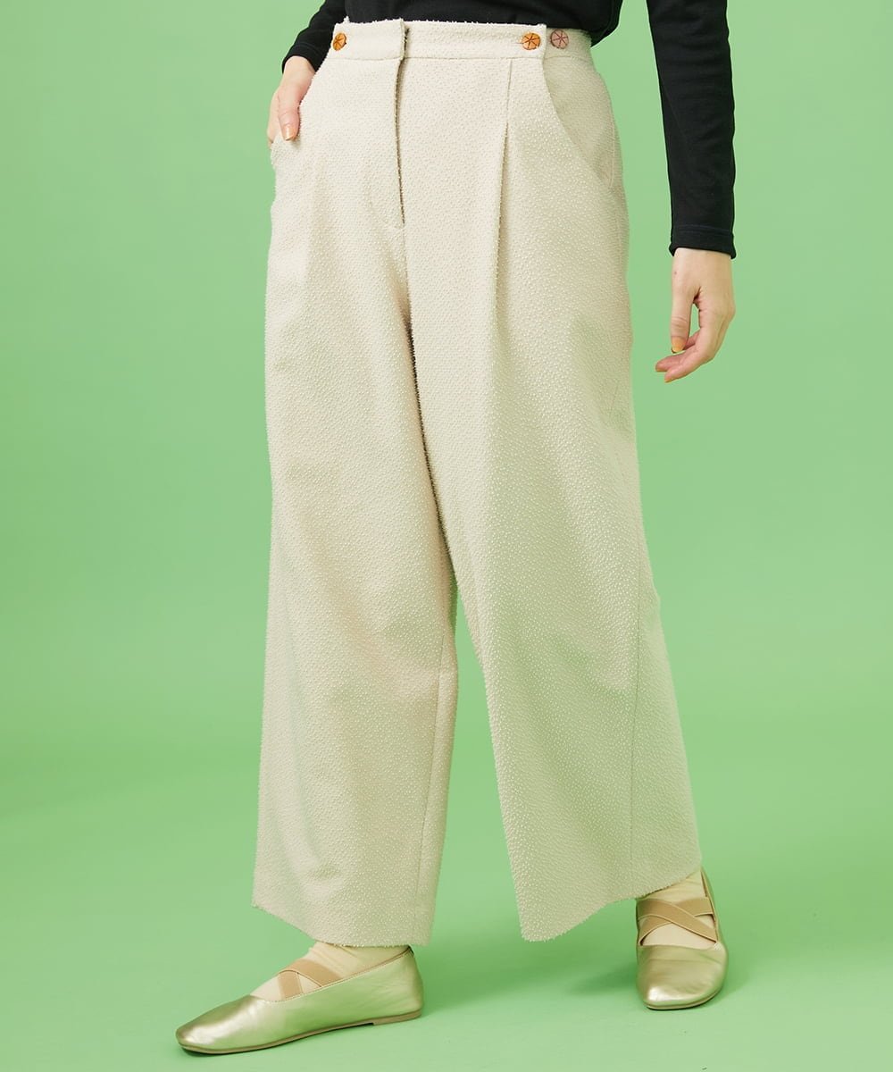 Jocomomola(ホコモモラ)カットソーツイード ワイドパンツ■デザイン特別な日のお出かけにぴったりなワイドパンツ。 トレンドライクな緩めのシルエットで、こなれた印象を演出します。 バックゴム仕様でリラクシーな着用感に。 さらにサイドボタンでウエスト部分を調節でき、細部にまでこだわりました。 前後のポケットにも注目。 ■素材粒々としたツイードを糸ループで表現したカットソージャカード素材。 重厚感のありながらもカットソーならではの柔らかさが魅力ポイントです。 ■スタイリングポイントベーシックなきれいめパンツは着回しのきく優秀アイテム。 無地見えなのでホコモモラの柄物ブラウスなどとも好バランスにまとまります。 同素材のジャケット【GJTCA50260】とセットアップでお召しいただけ、卒業・卒園式、入園・入学式などのフォーマルなシーンにもオススメです。 ----------------透け感:なし生地の厚さ:普通光沢感:なし伸縮性:なし裏地:あり洗濯:手洗い----------------同素材でお仕立てしたジャケット【GJTCA50260】ワンピース【GJPCA50280】もございます。 同シリーズのワンピース【GJECA50380】やジャケット【GJJCA50280】もオススメです。 model:H166B80W56H86着用サイズ:M※サイズS(38)はオンラインストア及び一部店舗での限定販売となります。 型番:GJLCA50200-80-038 NM7965【採寸】サイズウエストヒップ股上股下もも周りすそ周りS67cm96cm29.5cm61cm72.5cm52.5cmM70cm99cm30cm62cm74.5cm54cmL73cm102cm30.5cm63cm76.5cm55.5cm商品のサイズについて【商品詳細】中国素材:表地 コットン 89% ポリエステル 11% 裏地 ポリエステルサイズ:S、M、L手洗い可|ドライクリーニング|ウェットクリーニング※画面上と実物では多少色具合が異なって見える場合もございます。 ご了承ください。 商品のカラーについてJocomomola(ホコモモラ)カットソーツイード ワイドパンツ■デザイン特別な日のお出かけにぴったりなワイドパンツ。 トレンドライクな緩めのシルエットで、こなれた印象を演出します。 バックゴム仕様でリラクシーな着用感に。 さらにサイドボタンでウエスト部分を調節でき、細部にまでこだわりました。 前後のポケットにも注目。 ■素材粒々としたツイードを糸ループで表現したカットソージャカード素材。 重厚感のありながらもカットソーならではの柔らかさが魅力ポイントです。 ■スタイリングポイントベーシックなきれいめパンツは着回しのきく優秀アイテム。 無地見えなのでホコモモラの柄物ブラウスなどとも好バランスにまとまります。 同素材のジャケット【GJTCA50260】とセットアップでお召しいただけ、卒業・卒園式、入園・入学式などのフォーマルなシーンにもオススメです。 ----------------透け感:なし生地の厚さ:普通光沢感:なし伸縮性:なし裏地:あり洗濯:手洗い----------------同素材でお仕立てしたジャケット【GJTCA50260】ワンピース【GJPCA50280】もございます。 同シリーズのワンピース【GJECA50380】やジャケット【GJJCA50280】もオススメです。 model:H166B80W56H86着用サイズ:M※サイズS(38)はオンラインストア及び一部店舗での限定販売となります。 型番:GJLCA50200-80-038 NM7965【採寸】サイズウエストヒップ股上股下もも周りすそ周りS67cm96cm29.5cm61cm72.5cm52.5cmM70cm99cm30cm62cm74.5cm54cmL73cm102cm30.5cm63cm76.5cm55.5cm商品のサイズについて【商品詳細】中国素材:表地 コットン 89% ポリエステル 11% 裏地 ポリエステルサイズ:S、M、L手洗い可|ドライクリーニング|ウェットクリーニング※画面上と実物では多少色具合が異なって見える場合もございます。 ご了承ください。 商品のカラーについて 【SALE/60%OFF】Jocomomola カットソーツイード ワイドパンツ ホコモモラ パンツ その他のパンツ ネイビー ホワイト【送料無料】 8,800 ~