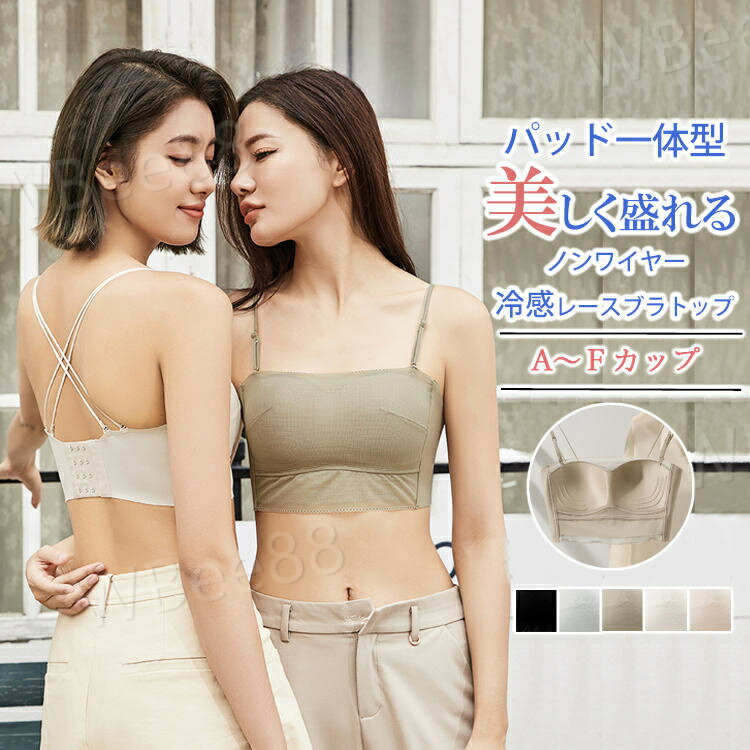 冷感 カップ付き キャミソール レース 胸元カバー チューブトップ ノンワイヤー ブラキャミ カップ付き ブラトップ レース 2,727 ~