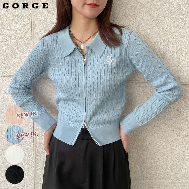 【10%OFFクーポン!1/16(金)1:59まで】GORGE ケーブル襟付きZIPカーディガン トップス 3,294 ~