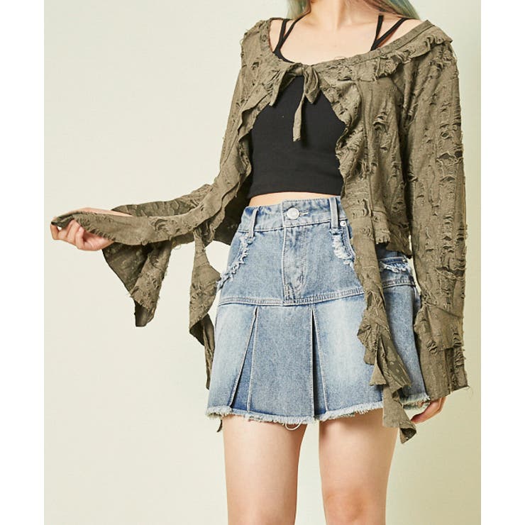 ラフに羽織るだけで雰囲気が出せる、ダメージカーディガン!フリルやリボンの甘さと、ダメージ加工のラフ感が絶妙にマッチした1枚。 羽織るだけで一気にこなれたスタイルに仕上がる、主役級アイテムです。 ■ デザイン全体に入ったダメージディテールが、こなれ感と抜け感を演出。 フロントはリボンで軽く結ぶ仕様になっており、開けて羽織っても、リボンを結んでも可愛い◎袖口や裾にかけて広がるフリル使いがフェミニンなムードを添えつつ、程よくラフに着られるバランス感が魅力です。 ■ コーディネートシンプルなキャミやタンクの上に羽織ってレイヤードを楽しむのはもちろん、ロゴTやワンピースとの相性も抜群。 デニムやワイドパンツでカジュアルダウンするのもおすすめ。 甘すぎず、でもしっかり華やぐ万能カーデです!甘辛MIXが楽しめる、着るだけで“今っぽさ”が手に入る一着☆サイズ:F 本体:着丈47cm身幅57cm肩幅49cm袖丈53cm本体:ポリエステル80%レーヨン20%■素材感透け感:あり裏地:なし伸縮性:あり※商品のお取り扱いに関しましては、商品に付属のアテンションカード、洗濯ネームをご覧ください。 原産国:中国※商品写真はできる限り実物の色に近づけるよう努めておりますが、 お使いのモニター設定、お部屋の照明等により実際の商品と色味が異なる場合がございます。 また、生産時期により、色・サイズ・デザインが多少異なる場合がございます。 あらかじめ御了承下さい。 返品・交換について購入後の交換は受け付けておりません。 予めご了承ください。 返品を希望される場合は購入履歴一覧の「ショップへの問い合わせ」よりお問い合わせください。 =========================複数配送先指定について1件の注文に対して、異なる住所への配送は対応出来かねます。 恐れ入りますが、異なる住所へ配送をご希望の場合、配送先毎に分けて注文いただきますようお願い申し上げます。 【トップスWOMEN】カーキ チャコール Fカーキ チャコール 【10%OFFクーポン!1/16(金)1:59まで】GORGE 《ダメージ加工×リボン結び》レディース カーディガン クロップド丈 羽織り 春秋 トップス 1,419 ~