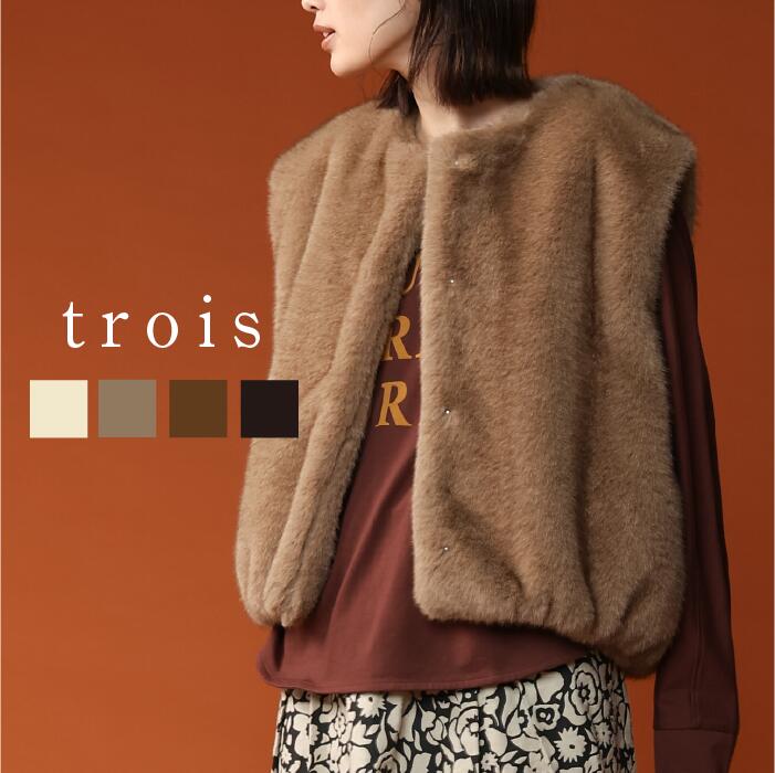 trois トロワ 2025aw エコファー バルーンショートジレ T256-83053 ファー ジレ バルーンシルエット ショート丈 大人カジュアル 上品 高見え きれいめ 即日発送 送料無料 19,800 ~