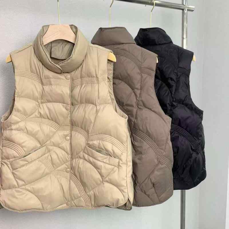・商品種類: 羽?背心・厚さ: 中等・素材: ポリエステル・詰め物: 白??・スタイル: 日?休?、?系?、甜美清新・シルエット: 收腰型・着丈: 普通(50cm<着丈?65cm)・襟: 立?・前立て: ダブルブレスト・装飾: 抽?・カラー: ブラック,ホワイト,カーキ,グリーン・サイズ: S,M,L・対象年齢: 成人・対象: 女性・ダウン含有量: 91%~95%・ダウン量: 51g-100g・羽毛含有量: 51%~55%・主面料成分含有量: 90%(含)-95%(不含)・主面料: ポリエステル・主面料成分2含有量: 90%(含)-95%(不含)・主面料成分2: ポリエステル ダウンベスト レディース 秋冬 ショート丈 白ダウン 軽量 立ち襟 スリムフィット ポリエステル ブラック ホワイト カーキ グリーン 9,643 ~