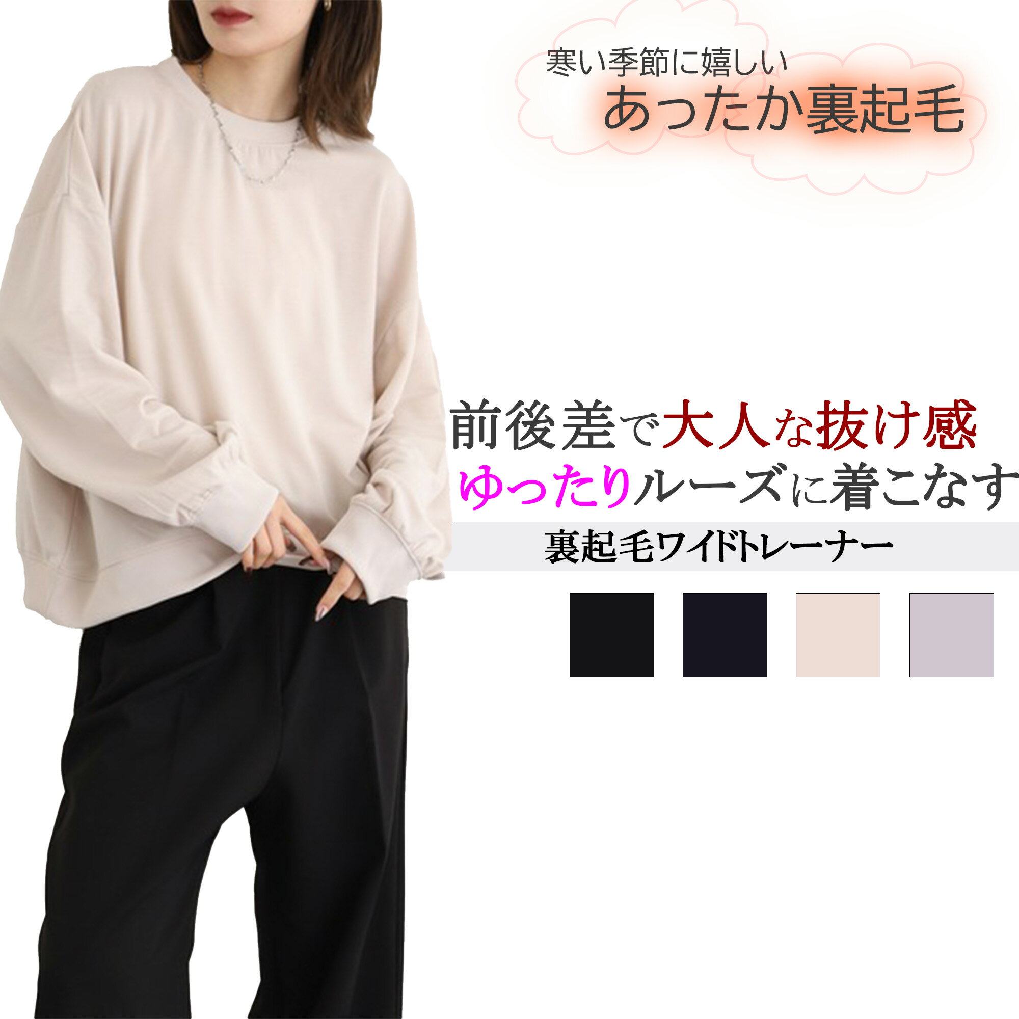 商品情報素材/材質ポリエステル85%コットン15%サイズ/寸法フリーサイズ着丈:57cm身幅:62m肩幅:57mそで丈:52.5cm注意モニター発色の具合により色合いが異なる場合がございます。 レディース スウェット スエット トレーナー 裏起毛 起毛 あったか 暖かい 防寒 冬 秋 冬服 秋服 前後差 丈違い ワイド ゆったり ワンサイズ 無地 シンプル おしゃれ きれいめ カジュアル 長袖 普段着 かわいい フリーサイズ 部屋着 ルームウェア 単色 丸首 クルーネック 【安心安全の国内発送】 レディースファッション トップス 30代 40代 50代 黒 秋冬 ロングシーズン 春 裏地暖か アウトドア おでかけ 旅行 雪 普段着 重ね着 ■ディティール・レディースの裏起毛の無地スウェットです。 ・襟、袖、裾部分はテレコリブになっています。 ・前後で丈の長さが違う点が特徴です。 ・ゆったりとしたシルエットです。 ■裏起毛保温性が高く、着るだけで暖かさを実感し、春秋冬に重宝します。 柔らかな肌ざわりで程よくフィットしてストレスフリーな着心地です。 ■オススメの着用■モデル・女性身長:170cm着用サイズ:フリーサイズ■素材ポリエステル85%, コットン15%・裏地:裏起毛・ネックライン:Uネック/クルーネック/丸首・袖の長さ:長袖/ロングスリーブ・仕様:襟、袖、裾テレコリブ/前後丈違い・柄:無地・光沢:なし・透け感:なし・伸縮性:ややあり・生地の厚さ:普通・サイズ感:ゆったりサイズ/ルーズ・機能加工:なし【ブランド紹介】KP素材・機能にこだわり、無地テイストのファッションをご提案しています。 こだわった商品をご提案しています。 ■注意事項・サイズ寸法に関して全て平置きで測定したものを記載しています。 あくまでも目安としてお考えいただきますよう誤差は予めご了承下さい。 ・カラーに関して1眼レフカメラで撮影していますが、画面上と実物では多少色具合が異なって見える場合がございます。 商品に色を近づけてはいますが、予めご了承ください。 ・在庫に関して完売表示の商品でも、ご用意できる場合がございますのでお気軽にご連絡くださいませ。 ・発送に関して基本的に12時までのご注文分を弊社に在庫がある場合は当日?翌日発送、それ以降を翌々営業日発送とさせて頂いております。 土、日、祝日はお休みを頂いております。 その他、ご不明な点がございましたらお気軽にお問合せください。 ??レビュー投稿キャンペーンについて当店の商品をご購入後、レビューを書いていただいたお客様30人の方に、画像のプレゼント商品をお届けします!1.プレゼント条件以下を満たした方が対象となります。 1.当店の商品をご購入2.楽天市場にてレビューを投稿※レビュー投稿後、確認が取れ次第郵送で発送致します。 2.注意事項・プレゼントは1注文につき1点となります。 ・プレゼントの中身はシークレットの為、お客様のご希望のキャラクターにお応えできませんのでご了承ください。 ・レビュー投稿前のキャンセル・返品の場合は対象外です。 ・プレゼントはなくなり次第終了となりますので、予めご了承ください。 その他、ご不明な点がございましたらお気軽にお問合せください。 5 レディース スウェット スエット トレーナー 裏起毛 起毛 あったか 暖かい 防寒 冬 秋 冬服 秋服 前後差 丈違い ワイド ゆったり ワンサイズ 無地 シンプル おしゃれ きれいめ カジュアル 長袖 普段着 かわいい フリーサイズ 部屋着 ルームウェア 単色 丸首 クルーネック 3,190 ~