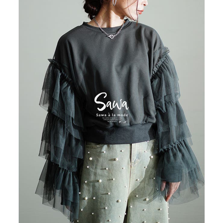 【ポイント2倍&クーポン!3/11(水) 1:59まで】Sawa a la mode スイートにこなれるチュールフリル袖トレーナー レディース ファッション トップス プルオーパー トレーナー チュール スウェット 長袖 袖コンシャス 30代 40代 9,100 ~