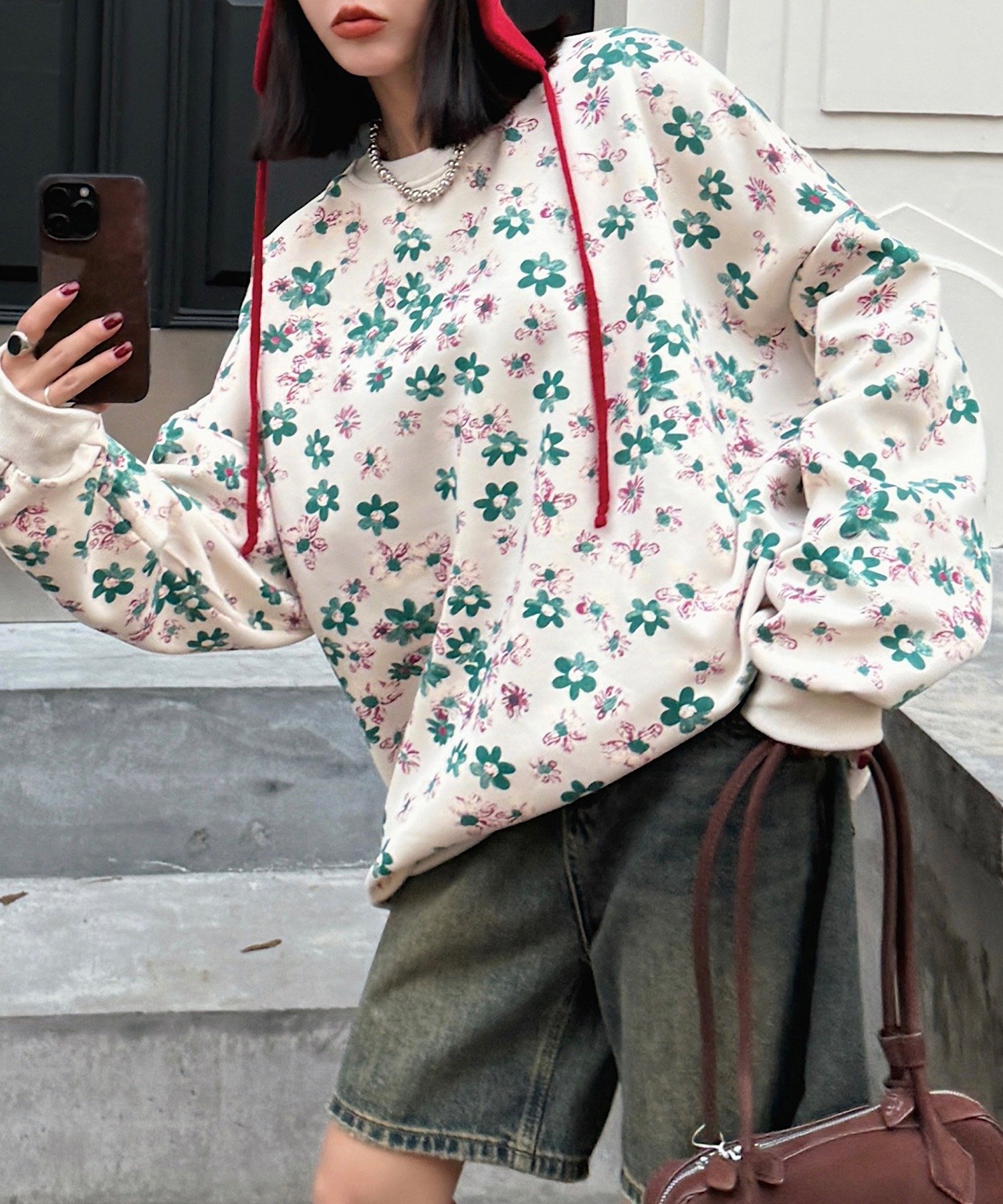 aimoha(アイモハ)【HOOK】for girls 総花柄スウェット日常に花を咲かせよう♪可愛らしい花柄が目を引く、一枚で主役級のスウェット。 オーバーサイズシルエットなので、リラックスして着こなせます。 柔らかな肌触りのスウェット生地で、リラックスして着られるデニムとスニーカーを合わせてカジュアルに、スカートと合わせてフェミニンに、様々なスタイルを楽しめます。 型番:npj8101a-703-F NM3301【採寸】FREE:身幅74 総丈73 ゆき87商品のサイズについて【商品詳細】中国素材:綿68% ポリエステル32%サイズ:FREE※画面上と実物では多少色具合が異なって見える場合もございます。 ご了承ください。 商品のカラーについてaimoha(アイモハ)【HOOK】for girls 総花柄スウェット日常に花を咲かせよう♪可愛らしい花柄が目を引く、一枚で主役級のスウェット。 オーバーサイズシルエットなので、リラックスして着こなせます。 柔らかな肌触りのスウェット生地で、リラックスして着られるデニムとスニーカーを合わせてカジュアルに、スカートと合わせてフェミニンに、様々なスタイルを楽しめます。 型番:npj8101a-703-F NM3301【採寸】FREE:身幅74 総丈73 ゆき87商品のサイズについて【商品詳細】中国素材:綿68% ポリエステル32%サイズ:FREE※画面上と実物では多少色具合が異なって見える場合もございます。 ご了承ください。 商品のカラーについて 【SALE/20%OFF】HOOK 【HOOK】for girls 総花柄スウェット アイモハ トップス スウェット・トレーナー カーキグリーン グレー ベージュ ブラック ブラウン【送料無料】 4,567 ~