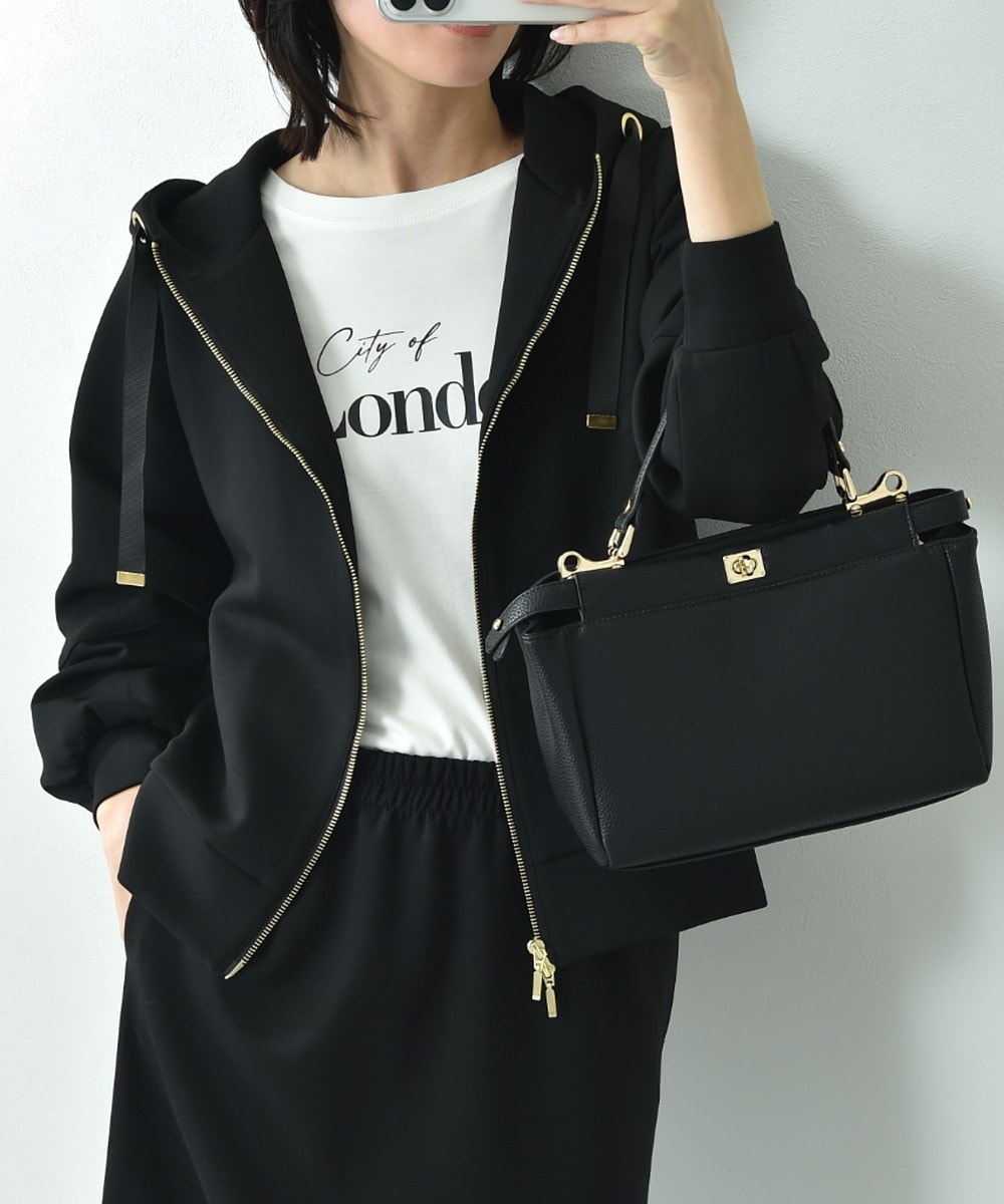 [型番:1062010119]輝きを纏う、上品華やかパーカー■デザイン控えめな煌めきが上品に映える、ラインストーン付きのジップパーカー。 表面がなめらかでハリのあるポンチ素材を使用しており、シワになりにくく、きちんと感をキープ。 カジュアルながらも洗練された印象を演出できます。 柔らかなストレッチ性も魅力で、ストレスフリーな着心地を実現◎フード端にリボンを通しているので、きゅっと結んで、印象を変えることも可能♪オンオフ問わず活躍する万能な一着です。 ■サイズ感全体的にゆとりのあるサイズ感。 伸縮性のある生地を使用しているので、着心地抜群です。 ■スタイリング1062040120 キラキララインストーンスカパンとのセットアップでの着用がおすすめ。 ロングボトムと合わせた、大人フェミニンスタイルも◎・・・・・・・・・・・・・・・・・・・・・・透け感:なし裏地:なし伸縮性:あり光沢感:あり生地の厚さ:普通・・・・・・・・・・・・・・・・・・・・・・■商品のお気に入り登録:再入荷通知やのこりわずか、お得なプライスダウンの情報も受け取ることができます。 ぜひご登録ください◎※サンプルでの撮影の為、製品と仕様が異なる場合がございます。 ※商品の色味は、撮影場所や光のあたり具合などにより色味が違って見える場合がございます。 また、お客様のお使いのモニター環境などにより色味が異なって見える場合がございます。 予めご了承の上ご注文下さい。 ■カラー:5色展開M: バスト110cm/着丈40cm/裄丈77cm/袖口10cm※( )で表記されている数字はヌードサイズです。 ヌードサイズとは衣服を身につけない身体のサイズです。 お客様ご自身の身体サイズと比較してお選びください。 ■素材: 表地/ポリエステル50% レーヨン44% ポリウレタン6% 裏地/ポリエステル100% ■お手入: 手洗い可 ドライクリーニング不可 陰干し >>商品のお取り扱い方法 ■原産国: 中 国 製ドロストリボンラインストーンパーカー/マジェスティックレゴン(MAJESTIC LEGON)ブラックアイボリーピンクベージュC/グレー画面上と実物では、多少色具合が異なって見える場合がございます。