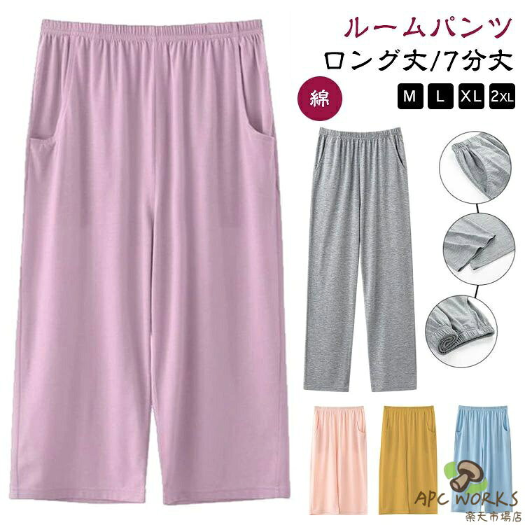 コットン イージーパンツ ルームウェア ロング丈/7分丈 パンツ レディース ルームパンツ パジャマ 薄手 綿 パジャマ下 ボトムス ズボン 春秋 リラクシングウェア 夏 ポケット付き 長ズボン ナイトウェア オールシーズン 軽い 無地