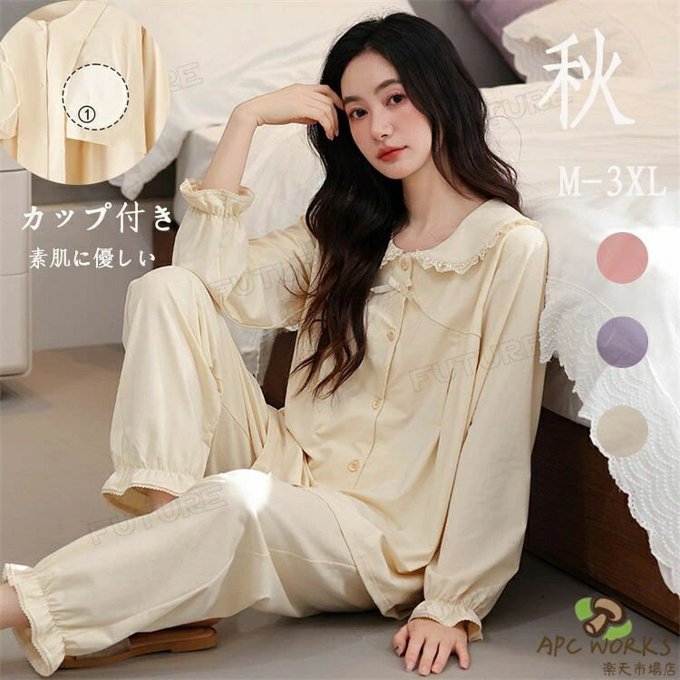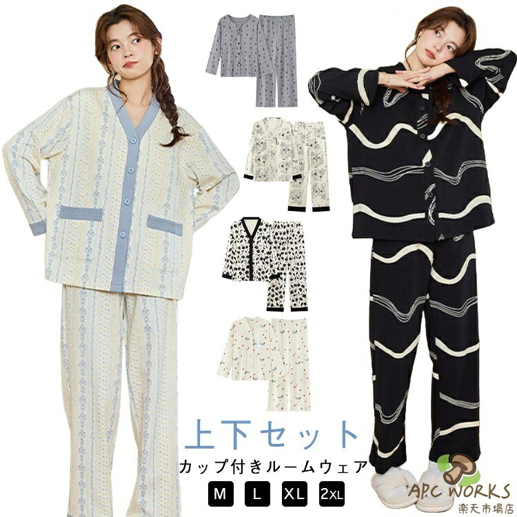 セットアップ レディース 長袖 ロングパンツ 上下セット 秋 パジャマ パジャマ ルームウェア 女の子 柔らかい カップ付き 入院 通気性 部屋着 寝巻き 修学旅行 母の日 プレゼント
