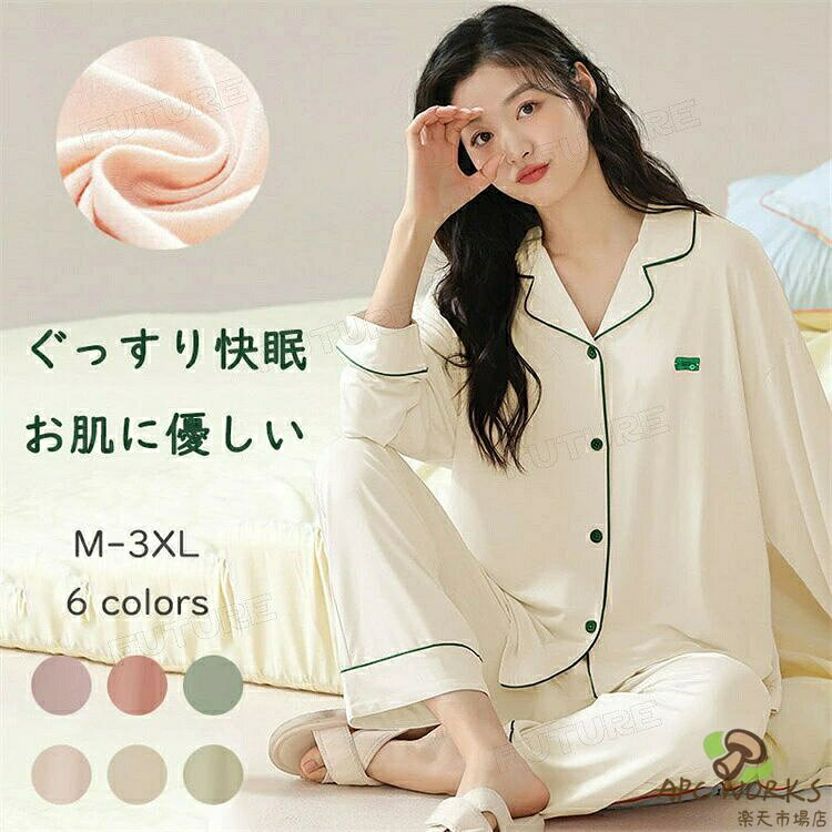 パジャマ レディ一ス 夏用 長ズボン 秋 綿 コットン 前開き 無地 大きいサイズ ポケット 安い 長袖 柔らか セットアップ 上下セット ルームウェア 部屋着 寝間着 可愛い 肌触り 韓国 ロングパンツ 薄手 吸汗 着心地 プレゼント 外出 旅行 入院 おしゃれ 母の日 敬老の日