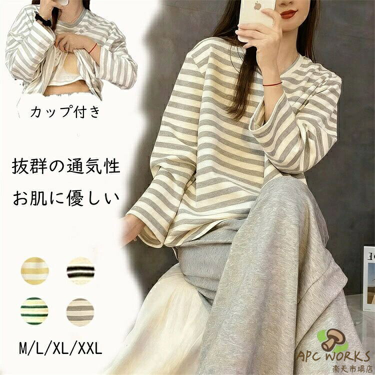 パジャマ レディ一ス 秋 夏用 長ズボン 長袖 綿 コットン カップ付き ストライプ 安い 柔らか セットアップ 上下セット ルームウェア 部屋着 寝間着 可愛い 丸首 肌触り 韓国 ロングパンツ 薄手 吸汗 着心地 プレゼント 春 外出 旅行 入院 おしゃれ 母の日 敬老の日 授乳