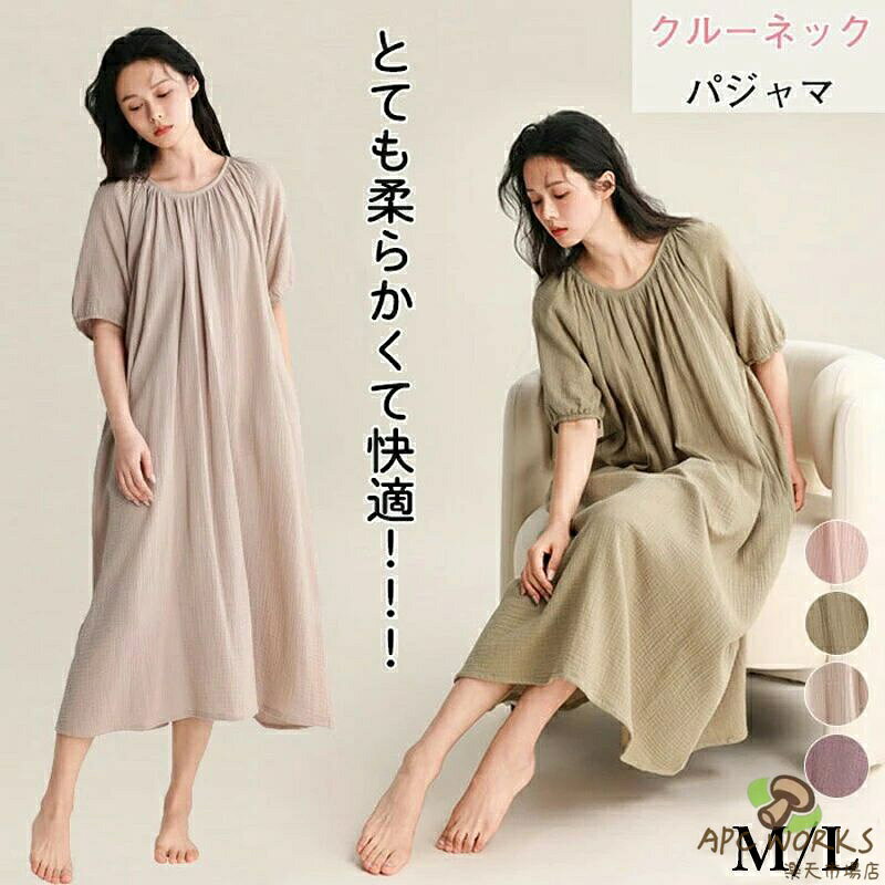 パジャマ ワンピース ルームウェア レディース 綿100% ガーゼ ルームワンピース ロング丈 ナイトガウン ネグリジェ 半袖 ゆったり 湯上り ワンオペ お着替え 着るタオル部屋着寝巻き薄手通気性吸汗速乾いストレッチシンプル夏おしゃれ ネグリジェ