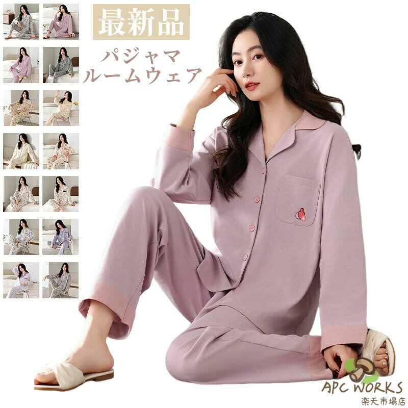【最新品】パジャマ ルームウェア レディース 上下セット 長袖 長ズボン 春秋 秋冬 大きいサイズ 前開き かわいい ゆったり 暖かい あったか おしゃれ 可愛い 花柄 襟付き 大人 部屋着 外出用 シニア 入院 ゴムウエスト