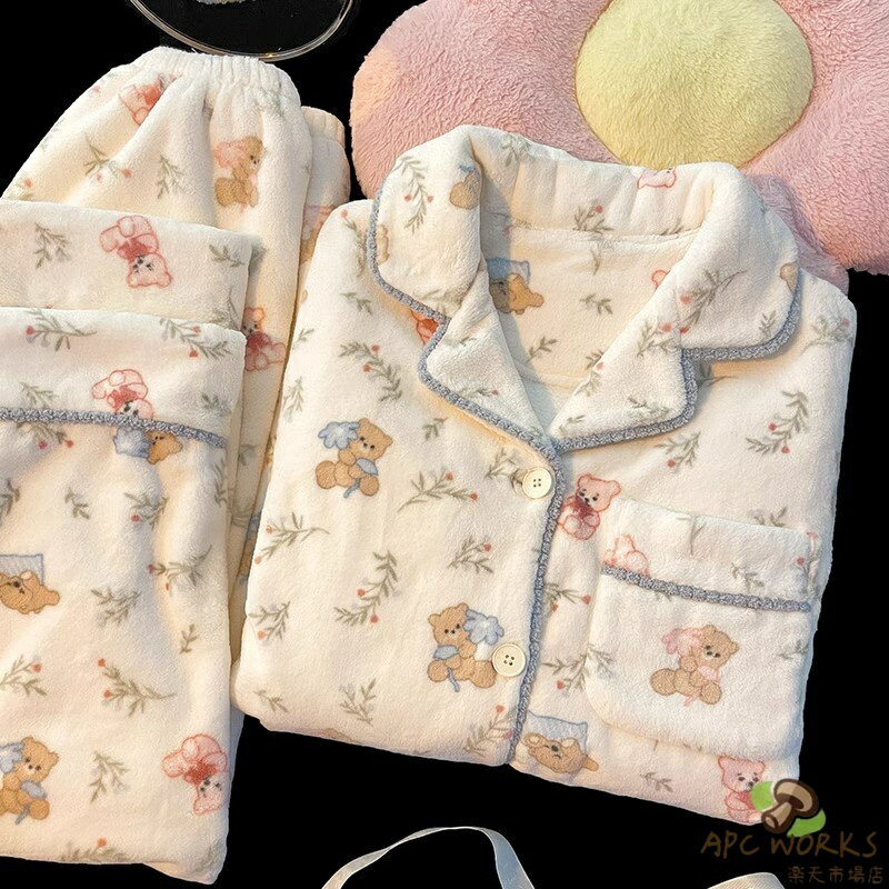 パジャマ 部屋着 秋冬 女性用フランネルパジャマセット もこもこ 冬用 上下セット ふわふわ あったか 可愛い 長袖 長ズボン 厚手 肌に優しい ルームウェア 部屋着 2点セット 暖かい 保温 フランネル 春 秋 冬 プレゼント