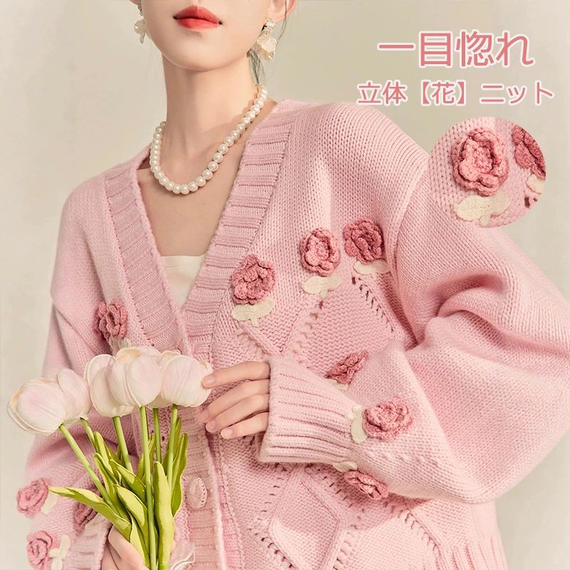 セーター ノーカラー 暖かい 秋冬 セーター ニット 厚手 おしゃれ ピンク 着回し ニットパーカー カジュアル ショート丈 立体花 柔らかい 長袖 防寒 羽織 ニットソー 羽織り カーディガン レディース 可愛い トップス アウター ニットカーディガン 4,480 ~