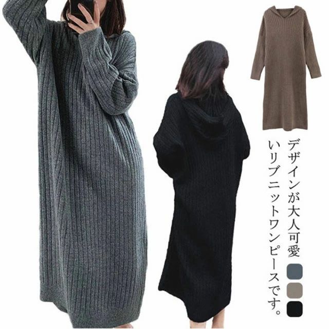 ニットセーター ロングパーカー カジュアル ニッ ロング 大きいサイズ 春 長袖 30代 ゆったり 黒 ロングニット お洒落 20代