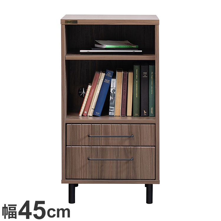 ■商品サイズ幅45×奥行40×高さ85cm■素材プリント化粧合板■重量18.5kg■生産国ベトナム■特徴45cm幅のコンパクトなキャビネットです。 落ち着きのあるブラウンカラーなので大人な雰囲気が漂います。 取っ手・脚部にアイアン素材をミックスしているため男前な雰囲気がお好みの方にもオススメです!引出し前板にスリットが入っているのもデザインのポイント。 シンプルベーシックなデザインながら、程よく個性のあるシリーズです。 オープン部分の棚板は可動式で、物にあわせて高さ調節ができます。 引出しは上段下段で深さが違うので小物収納に便利。 背板にはケーブルホールが空いていて、電子機器を置く事ができるためローボードと並べてご使用いただくのもオススメです。 リビングからお子様部屋まで、様々なシーンで活躍してくれます。 ※お客様組立商品になります。 ※キャビネット本体のみのお届けとなります、本や雑貨類は付属しません。 ■梱包サイズ幅81×奥行44.5×高さ16【代引きについて】こちらの商品は、代引きでの出荷は受け付けておりません。 【送料について】北海道、沖縄、離島は別途送料を頂きます。