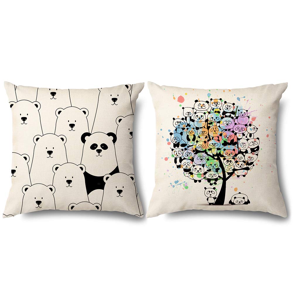 Otostar クッションカバー 2点セット 北欧 おしゃれ 可愛い プリント リネン素材 隠しファスナー付き インテリア 室内装飾用 装飾用ピローカバー (45x45,パンダ) 2,367 ~