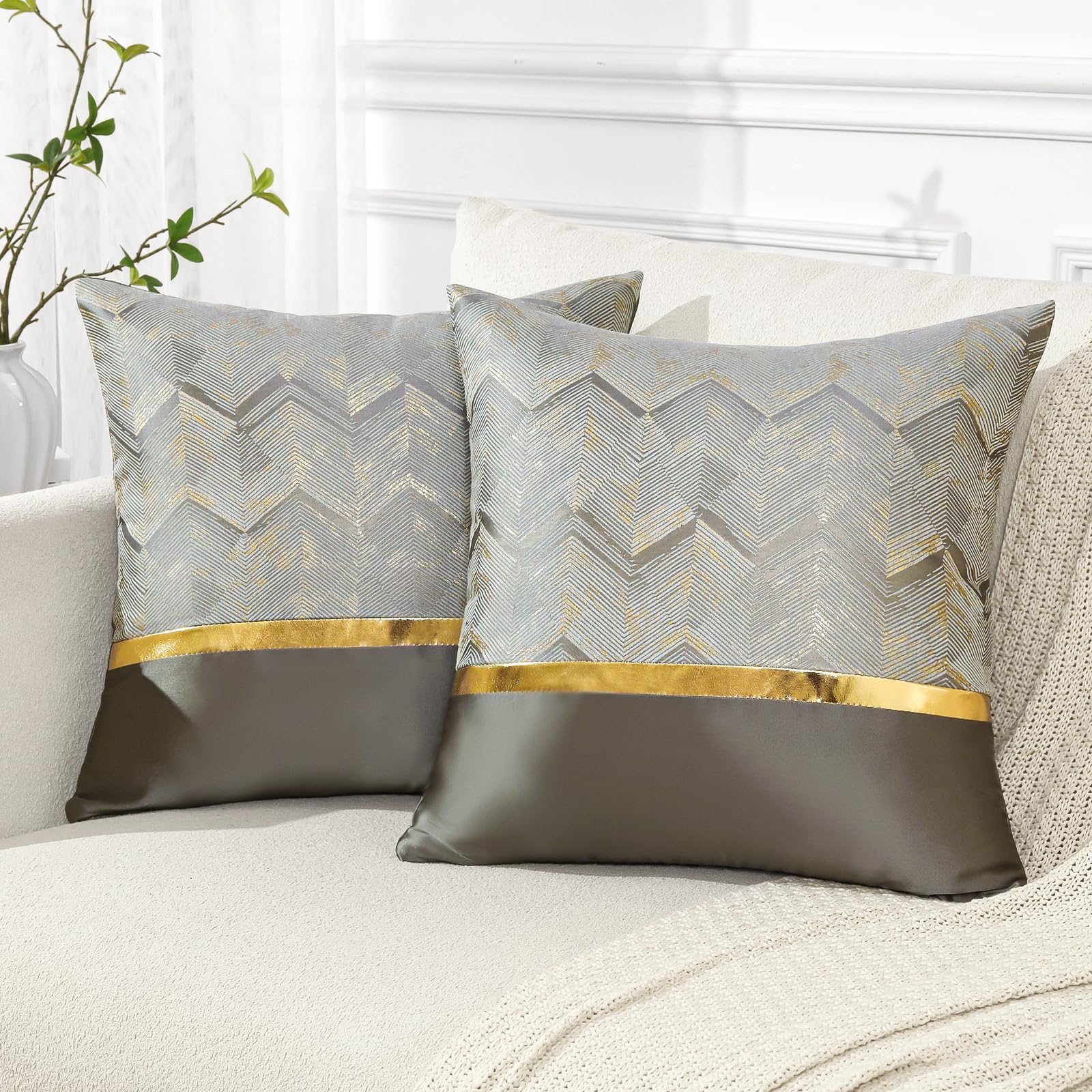 Otostar クッションカバー 2枚セット おしゃれ 可愛い シェブロン柄 ゴールドライン付き モダン 隠しファスナー付き インテリア 室内装飾用 装飾用ピローカバー (45x45,グレー) 2,944 ~