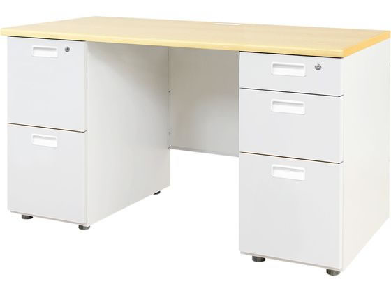【商品説明】シンプルで頑丈なスチールデスクです。 天板奥の中央には配線穴付き。 フタを外せば大きく開きます。 袖箱は鍵を閉めると全段ロックされるオールロック錠を採用しています。 引き出しはダブルサスペンションレールを採用しているので、丈夫でスムーズに開閉し、フルオープンなので奥の物も取り出しやすくなっています。 【仕様】●カラー:本体ホワイト×天板ナチュラル木目×袖箱ホワイト●外寸法:幅1200×奥行600×高さ700mm●材質:天板/パーティクルボード・メラミン化粧板、脚フレーム・幕板・袖箱/スチール・粉体塗装●機能:コードホール付き、オールロック式、ダブルサスペンションレール、大型引出し、アジャスター付き●重量:52kg●必要工具:プラスドライバー●組立品●付属品:鍵4本、仕切板●注文単位:1台【別途送料について】沖縄・離島・一部北海道や山間部へのお届けの場合、別途送料の発生、もしくはお届けができない場合がございます。 別途送料が発生する場合、ご注文後、翌営業日中にご案内いたします。 ※原則、軒先(玄関先)渡しとなります。 階上、階下となる場合、またエレベーターのご使用ができない場合、段差があるなど、納品場所の状況によりましては1階軒先でのお渡しとなります。 【時間指定について】お届け時間の指定は承れません。 【備考】※メーカーの都合により、パッケージ・仕様等は予告なく変更になる場合がございます。 【検索用キーワード】Netforce ネットフォース ねっとふぉーす NUTS ナッツ なっつ 両袖机 2+2段 W1200×D600 NA×WH 両袖机 ナチュラル×ホワイト 2段×2段 両袖机 ワークデスク パソコンデスク 幅1200×奥行600×高さ700mm 本体ホワイト×天板ナチュラル×袖箱ホワイト なちゅらる ほわいと LRD−126−FW−NA−WH−22 LRD126FWNAWH22 オールロック機構 鍵×4本 仕切板4枚 オフィス 会社 事務所 勉強 在宅勤務 事務机 作業机 エグゼクティブデスク 社長机 役員机 書斎机 スチールデスク 事務デスク 1台 デスク ワゴン スチールデスク R148MSNUTSのニュータイプが誕生! 【マラソン限定2000円クーポン★ポイント2倍16日9:59迄】【メーカー直送】Netforce NUTS(ナッツ) 両袖机 2+2段 W1200×D600 NA*WH【代引不可】【お客様組立】両袖机 スチールデスク ワゴン オフィスデスク 事務机 オフィス家具 35,945 ~