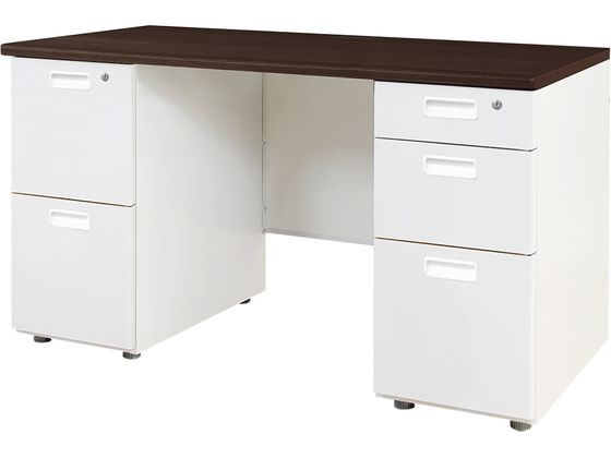 【商品説明】シンプルで頑丈なスチールデスクです。 天板奥の中央には配線穴付き。 フタを外せば大きく開きます。 袖箱は鍵を閉めると全段ロックされるオールロック錠を採用しています。 引き出しはダブルサスペンションレールを採用しているので、丈夫でスムーズに開閉し、フルオープンなので奥の物も取り出しやすくなっています。 【仕様】●カラー:本体ホワイト×天板ダークブラウン木目×袖箱ホワイト●外寸法:幅1200×奥行600×高さ700mm●材質:天板/パーティクルボード・メラミン化粧板、脚フレーム・幕板・袖箱/スチール・粉体塗装●機能:コードホール付き、オールロック式、ダブルサスペンションレール、大型引出し、アジャスター付き●重量:52kg●必要工具:プラスドライバー●組立品●付属品:鍵4本、仕切板●注文単位:1台【別途送料について】沖縄・離島・一部北海道や山間部へのお届けの場合、別途送料の発生、もしくはお届けができない場合がございます。 別途送料が発生する場合、ご注文後、翌営業日中にご案内いたします。 ※原則、軒先(玄関先)渡しとなります。 階上、階下となる場合、またエレベーターのご使用ができない場合、段差があるなど、納品場所の状況によりましては1階軒先でのお渡しとなります。 【時間指定について】お届け時間の指定は承れません。 【備考】※メーカーの都合により、パッケージ・仕様等は予告なく変更になる場合がございます。 【検索用キーワード】Netforce ネットフォース ねっとふぉーす NUTS ナッツ なっつ 両袖机 2+2段 W1200×D600 DBR×WH 両袖机 ダークブラウン×ホワイト 2段×2段 両袖机 ワークデスク パソコンデスク 幅1200×奥行600×高さ700mm 本体ホワイト×天板ダークブラウン×袖箱ホワイト だーくぶらうん ほわいと LRD−126−FW−DBR−WH−22 LRD126FWDBRWH22 オールロック機構 鍵×4本 仕切板4枚 オフィス 会社 事務所 勉強 在宅勤務 事務机 作業机 エグゼクティブデスク 社長机 書斎机 スチールデスク 1台 デスク ワゴン スチールデスク R149MSNUTSのニュータイプが誕生! 【マラソン限定2000円クーポン★ポイント2倍16日9:59迄】【メーカー直送】Netforce NUTS(ナッツ) 両袖机 2+2段 W1200×D600 DBR*WH【代引不可】【お客様組立】両袖机 スチールデスク ワゴン オフィスデスク 事務机 オフィス家具 35,945 ~
