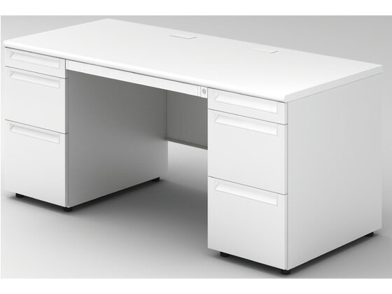 【商品説明】袖の引出は片側がD−3(下段がB4対応)タイプ、片側がA−3(中段と下段がA4対応)タイプです。 【仕様】●外寸法:幅1600×奥行700×高さ720mm●天板厚さ:30mm●下肢空間寸法:幅806×奥行617×高さ645mm●引出内寸法:(上段)幅328×奥行442×高さ72mm(中段)幅328×奥行442×高さ239mm(下段)幅317×奥行527×高さ295mm、センター引出/幅715×奥行382×高さ42mm●材質:天板/(表面)メラミン樹脂化粧版、脚・引出/鋼板(焼付塗装)●質量:78.2kg●耐荷重:天板/約140kg●引出ロック方法:ワンアクションロック●機能:全段ラッチ付、開閉表示付●カラー:ホワイト●付属品:鍵(2個)、仕切り板(3枚)、ペントレー(2個)、センタートレー(1個)●生産国:日本●組立設置サービス●注文単位:1台●グリーン購入法適合●品番:US−NS167D−33 WS/W4※受注生産品につき、ご注文以降キャンセルを承ることができかねます。 【検索用キーワード】ぷらす PLUS ユーエスツー US2 オフィスデスク 事務机 幅1600 奥行700 高さ720 幅1600×奥行700×高さ720 白 ワンアクションロック ラッチ機構 カギ付き 鍵付き 開閉表示付 内筒交換 事務用デスク US−S167D−33−WSW4 USS167D33WSW4 669677 デスク ワゴン スチールデスク WW16 R13382デスク上のレイアウトが自由に行える配線口仕様。