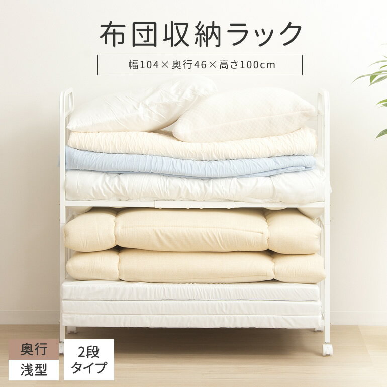 押入れ・クローゼット収納をもっと見る ≫ 送料 無料(※沖縄・離島見積もり) サイズ 本体:幅104×奥行46×高さ100cm 材質 スチール、粉体塗装 キャスター:樹脂成型品 仕様 耐荷重:30kg(1枚につき棚板15kg) 棚位置6段階調節可 お客様組立品(組立の目安:約30分) 生産国:中国 梱包サイズ:幅54×奥行47.5×高さ17cm 梱包重量:10.9kg 備考 メーカー直送品 返品不可 コメント かさばる布団や毛布・マットレスをすっきり収納できる布団収納ラック。 床に置きっぱなしだと気になる湿気やカビも、布団ラックを使えば通気性抜群で お悩み解決♪ キャスター付きで移動も簡単なので、布団の上げ下げや持ち運びも楽々。 棚位置は6段階で高さが調節可能で、棚位置を上げて下に衣装ケースや収納ボックスを 入れることもできます。 抜群の収納力で押入れやクローゼット内の整理にも最適。 お掃除ロボットやフローリングワイパーが潜り込める高さなので、下にホコリが 溜まるのも防止できます。 収納量に合わせて高さは1段と2段、奥行も三つ折りマットレスや布団が収納できる 深型(ノーマルタイプ)と、省スペースで場所を取らない浅型(スリムタイプ)をご用意しました。 あなたの暮らしにぴったりの1台をお選びいただけます。 モニターや撮影条件により実際のお色と異なって見える場合がございます。 予めご了承の上、ご購入をお願い致します。 在庫 まれにメーカー欠品の場合があります。 お急ぎの方は事前に在庫状況をお問い合わせください。 シリーズ商品 浅型/1段 浅型/2段 深型/1段 深型/2段 布団収納ラック 棚高さ調節可能 奥行浅型 2段タイプ スリム 省スペース キャスター付き ハイタイプ ふとん収納ラック マットレス収納 押入れ収納ラック ふとんラック スチール 9,690 ~