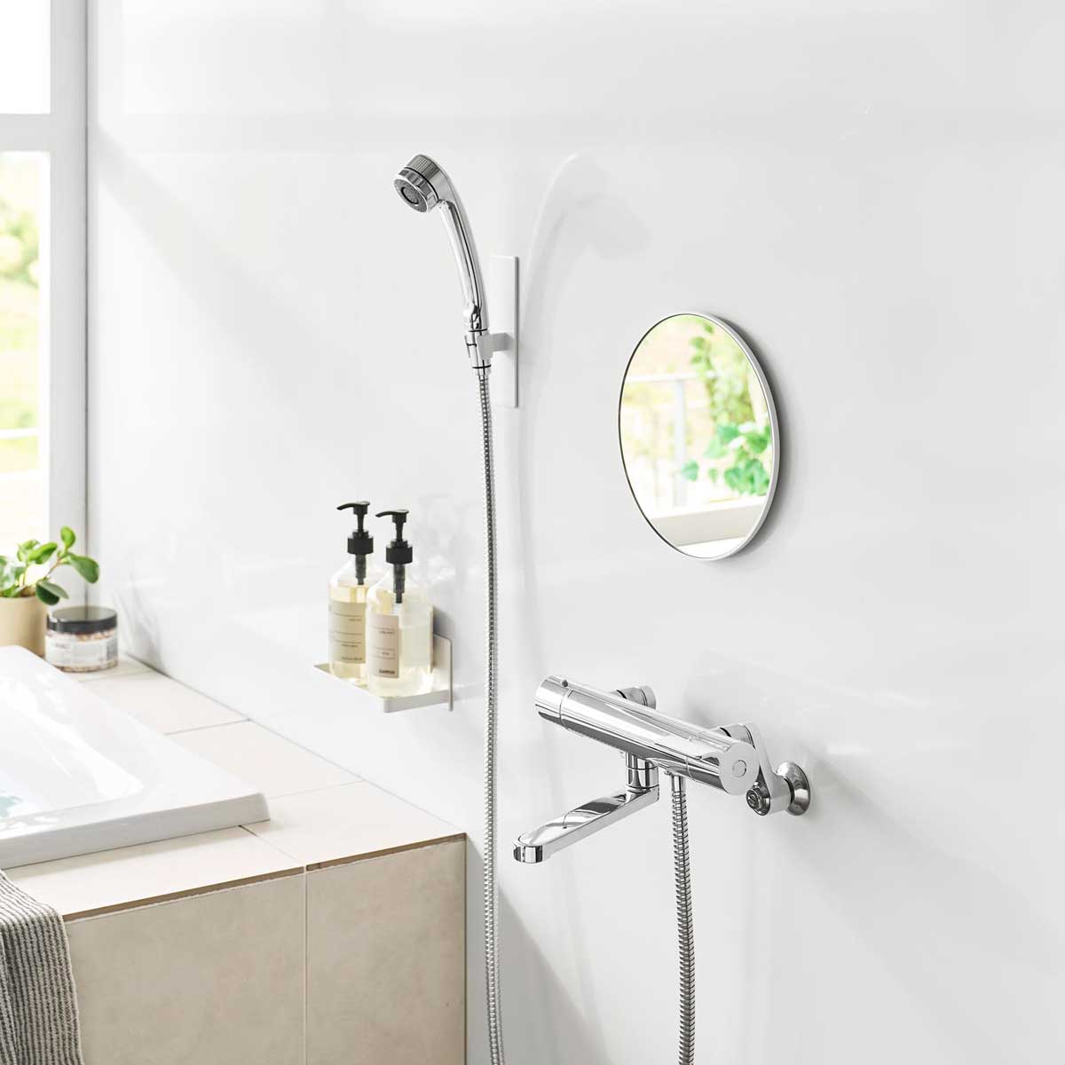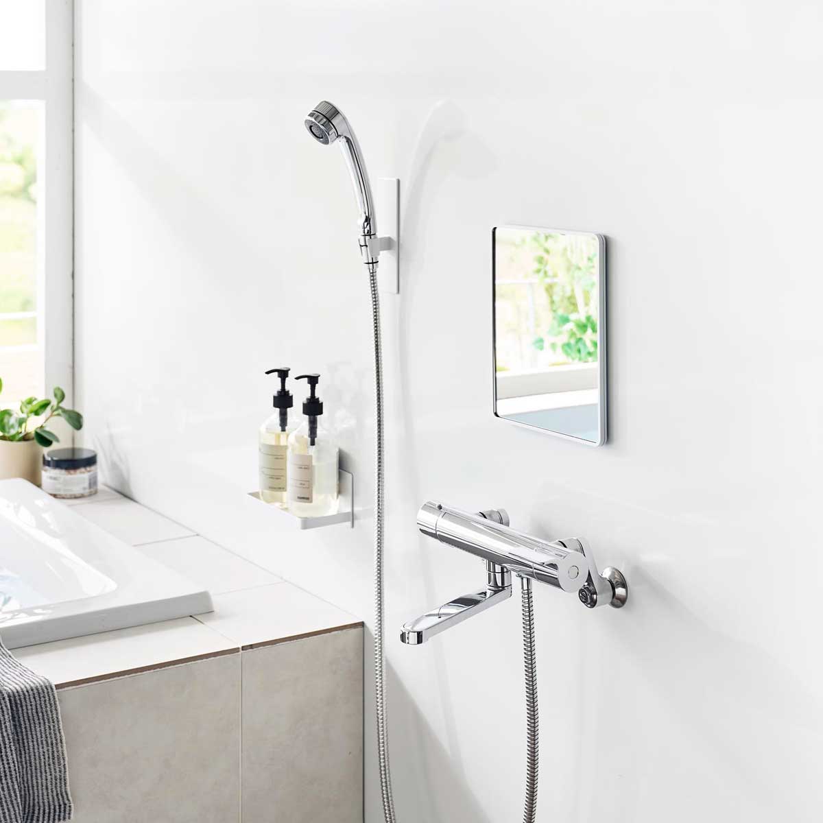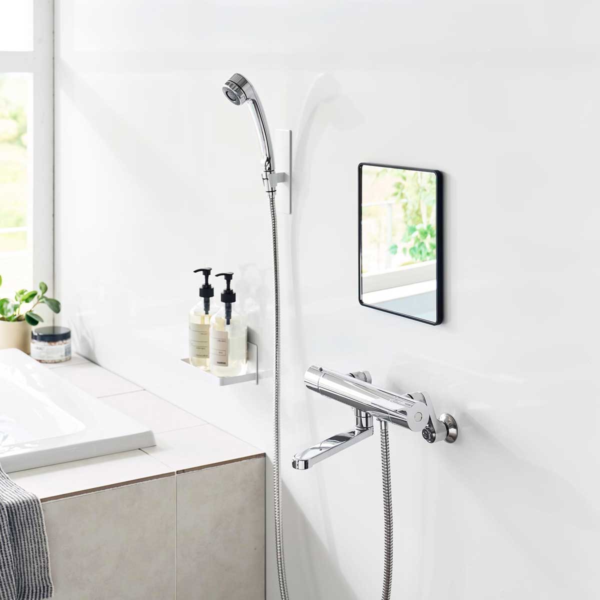 マグネットで簡単設置 美しく、透明感があるロングサイズの角型ガラス製バスルームミラーです。 フレームと壁の隙間に指を入れて取り外しやすい形状なので、お掃除がしやすく清潔に保てます。 曇り止めフィルムを全面に粘着加工しているため、鏡面が曇らず快適にお使いいただけます。 商品の情報 ・ブランド:YAMAZAKI(山崎実業)/日本 ・ジャンル:浴室ミラー ・主な素材:ABS樹脂、マグネット(フレーム)/シリコーンゴム(滑り止め)/3mm厚ガラス(ミラー)/PET(表面フィルム) ・生産国:中国 ・サイズ:約W205xD14XH605mm ・重量:約1600g ・耐熱温度:90℃ ・耐冷温度:-40℃ ・使用できる面:マグネットがつく凹凸のない平らな面 スチール面 この商品の仲間たち tower タワー マグネットバスルームミラー 角型 ロング 10308 ホワイト tower タワー マグネットバスルームミラー 角型 ロング 10309 ブラック 浴室ミラー 山崎実業 正規品 tower タワー マグネットバスルームミラー 角型 ロング マグネットで簡単設置 風呂鏡 マグネット設置 大きめ バスルームミラー 10308 ホワイト 14,300 ~