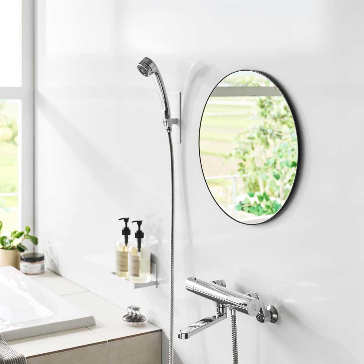 マグネットでお好みの場所に設置 軽量で割れない、樹脂製の小さなマグネット丸型ミラー。 バスルームに簡単に設置できる、直径約42cmのマグネット丸型バスルームミラーです。 厚さ6mmの樹脂製ミラーで、ゆがみにくく衝撃にも強い仕様です。 軽量でクリアな映りの樹脂ミラー マグネットでお好みの場所に簡単に設置でき、フレームと壁の隙間に指を入れて取り外しやすい形状で、お掃除がしやすく清潔に保てます。 曇り止めフィルムを全面に粘着加工しているため、鏡面が曇らず快適にお使い頂けます。 商品の情報 ・ブランド:YAMAZAKI(山崎実業)/日本 ・ジャンル:バスルームミラー ・主な素材:ABS樹脂、マグネット(フレーム)/シリコーンゴム(滑り止め)/ポリスチレン(ミラー)/PET(表面フィルム) ・生産国:中国 ・サイズ:約W423xD14XH423mm ・重量:約1600g ・耐熱温度:70℃ ・耐冷温度:-40℃ ・使用できる面:マグネットがつく凹凸のない平らな面、スチール面 この商品の仲間たち tower タワー マグネットバスルーム樹脂ミラー 丸型 42cm 10173 ホワイト tower タワー マグネットバスルーム樹脂ミラー 丸型 42cm 10174 ブラック 浴室くもり止めミラー 山崎実業 正規品 tower タワー マグネットバスルーム樹脂ミラー 丸型 42cm マグネットでお好みの場所に簡単設置 樹脂製ミラー 曇り止め プラスチックミラー 10174 ブラック 12,650 ~