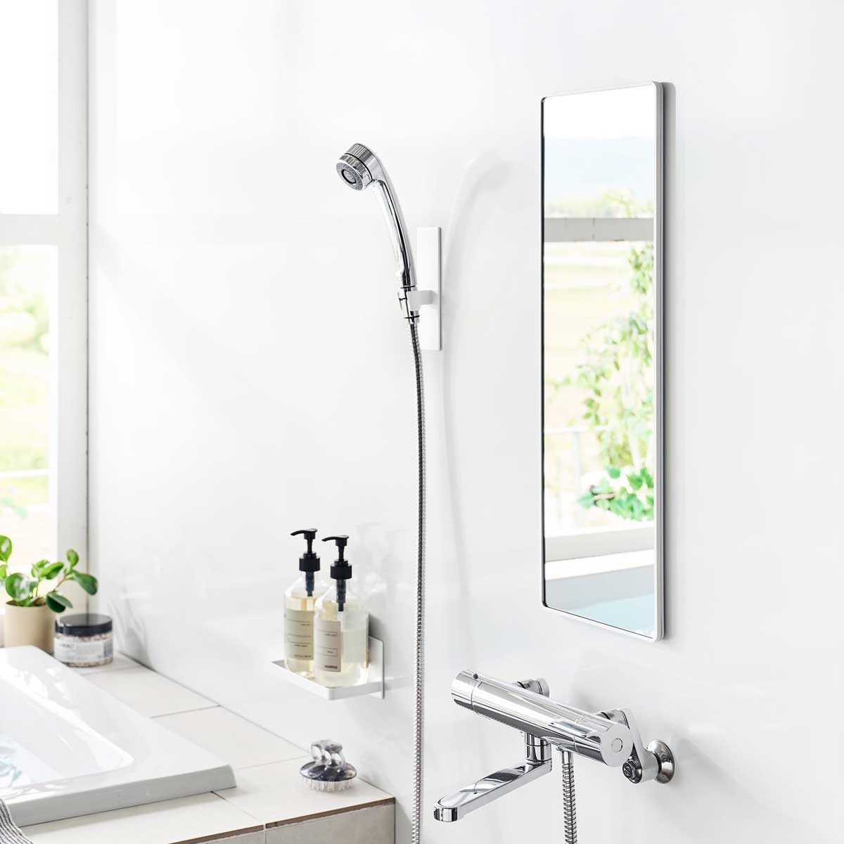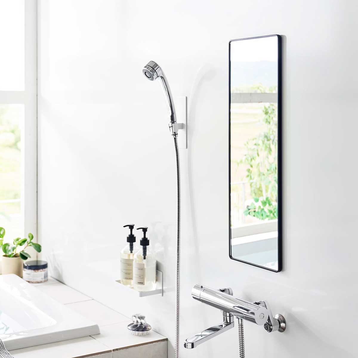 マグネットでお好みの場所に設置 軽量で割れない、樹脂製のマグネット角型ミラー。 広範囲が映せる縦長形状で、横向きに設置も可能な角型バスルームミラーです。 厚さ6mmの樹脂製ミラーで、ゆがみにくく衝撃にも強い仕様です。 軽量でクリアな映りの樹脂ミラー マグネットでお好みの場所に簡単に設置でき、フレームと壁の隙間に指を入れて取り外しやすい形状で、お掃除がしやすく清潔に保てます。 曇り止めフィルムを全面に粘着加工しているため、鏡面が曇らず快適にお使い頂けます。 商品の情報 ・ブランド:YAMAZAKI(山崎実業)/日本 ・ジャンル:バスルームミラー ・主な素材:ABS樹脂、マグネット(フレーム)/シリコーンゴム(滑り止め)/ポリスチレン(ミラー)/PET(表面フィルム) ・生産国:中国 ・サイズ:約W206xD14xH606mm ・重量:約1470g ・耐熱温度:70℃ ・耐冷温度:-10℃ ・使用できる面:マグネットがつく凹凸のない平らな面、スチール面 この商品の仲間たち tower タワー マグネットバスルーム樹脂ミラー 角型 ロング 10304 ホワイト tower タワー マグネットバスルーム樹脂ミラー 角型 ロング 10305 ブラック 浴室くもり止めミラー 山崎実業 正規品 tower タワー マグネットバスルーム樹脂ミラー 角型 ロング マグネットでお好みの場所に簡単設置 樹脂製ミラー 曇り止め プラスチックミラー 10304 ホワイト 12,100 ~
