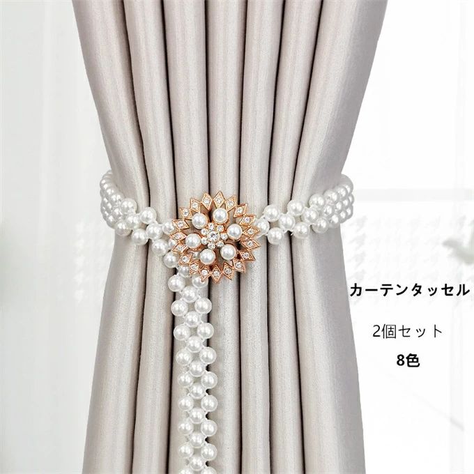 【送料無料】2個セット カーテンタッセル 伸縮性 ストラップ カーテンホルダー エレガント カーテン タッセル おしゃれ 高級 カーテン留め具 カーテン止め カーテンアクセサリー 取り付け簡単 パール/キラキラ 8色 3,554 ~