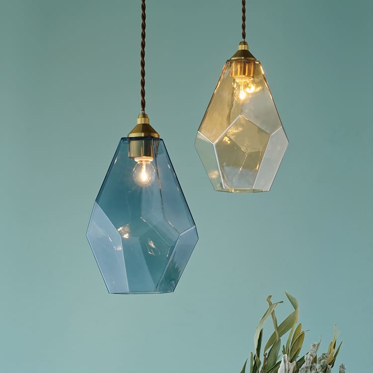 DETAILS ガラス製のアンティークなペンダントライト「マリーズ[Maruse]」。 ガラスの表面にあえて凹凸を残し、光にいろいろな表情を生むこだわりのデザイン。 多面体のガラスシェードからは、優しく懐かしい、レトロな灯りが広がります。 商品サイズ シェードサイズ/直径170×高さ200(mm) フランジカバー/直径90×高さ90(mm) 天井からシェード下までの寸法(全高)/最短460?最長1050(mm) ※900mmのコードを使用しています。 重量 約0.9kg 材質 ガラス・スチール カラー クリア(シーリングカバー:ゴールド) ブルー(シーリングカバー:ゴールド) アンバー(シーリングカバー:ゴールド) 仕様 E-17/60Wまで(電球は付属していません) ※白熱球、電球型蛍光灯、LED電球使用可 壁スイッチで操作(ON/OFF) 注意事項 お買い物の際は、会社概要の「その他の注意点」を必ずご確認ください。 ; LIGHTING PENDANT LIGHT MARYSE ペンダントライト マリーズ ステンドグラスがレトロで愛らしい どこか懐かしい、アンティーク調の雰囲気がたまらないペンダントライト「MARYSE(マリーズ)」。 ハンドメイドのステンドグラスから上品な光が溢れます。 あえてガラスの表面を凸凹にすることで光が屈折し、美しい表情を見せてくれます。 クラシカルで品のある存在感で主張し過ぎず、お部屋にそっと馴染んでくれます。 1灯でも綺麗ですが、多灯吊りで使うのがおすすめ。 まるでカフェにいるかのような、素敵な空間を作ってくれることでしょう。 多灯で吊るしてダイニングにも。 優しい光で食卓を包み込みます。 ハンドメイドの美しいステンドグラス 透明感溢れる美しいステンドグラス。 ハンドメイドのガラスシェードは一面一面をハンダ付けしています。 ハンドメイド特有の仕上がりはまるでヨーロッパのヴィンテージ品の様な趣があります。 目を惹きつけるガラスの凹凸 ガラスの表面にあえて凹凸感をだすことで、独特の陰影が生まれ美しい光の表情を見せてくれます。 凹凸があることでよりアンティークな雰囲気を演出してくれます。 より明るく・お洒落に使いたいなら多灯吊りで デザイン性が高いので1点だけでも様になりますが、多灯で使うことで明るくよりお洒落な空間に仕上がります。 優しい光が集まってより温かみのあるムードを造ってくれます。 高さを揃えても、あえてばらばらに吊るしても雰囲気が出ます。 クリアー・ブルー・アンバーの3色が組み合わさることで、また違った印象を与えてくれるでしょう。 キッチンなど省スペースで活躍してくれるサイズ感 コンパクトなサイズ感なのでキッチンやダイニングテーブルの上等の省スペースでのご使用がおすすめです。 キッチンに吊るせばお洒落な空間に早変わり。 料理の時間を素敵な一時に演出してくれます。 また手元に光を灯すことで作業が捗ることでしょう。 点灯・消灯で変わる表情 ステンドグラスから溢れる灯りに目が奪われる点灯時。 柔らかい光が空間に心地よさを運んでくれます。 消灯時にはオブジェのような存在感で目を愉しませてくれます。 詳細について 一面一面をハンダ付けにしています。 あえてガラスの表面を凸凹にすることで、光に色々な表情を与えます。 レトロな雰囲気を楽しめるツイストコード。 一般的な引掛シーリング用なので取り付けも簡単です。 クラシカルで洗練された佇まいとふんわりとした灯りのコントラストが素敵なペンダントライトです。 消灯時にもインテリアのような存在感をで空間を彩ります。 まるでヨーロッパのアパルトマンのような雰囲気のあるキッチンに。 照明が変わるだけでお部屋の雰囲気が格段に変わります。 この「マリーズ」でセンスあるお部屋作りを初めませんか? ペンダントライト 1灯 マリーズ Maryse LT-9340 インターフォルム led 北欧 デザイン アンティーク レトロ ガラス ステンドグラス 内玄関照明 トイレ ダイニング照明 食卓用 おしゃれ キッチン ダイニング 照明器具 間接照明 天井照明 直付け 子供部屋 かわいい リビング 14,036 ~