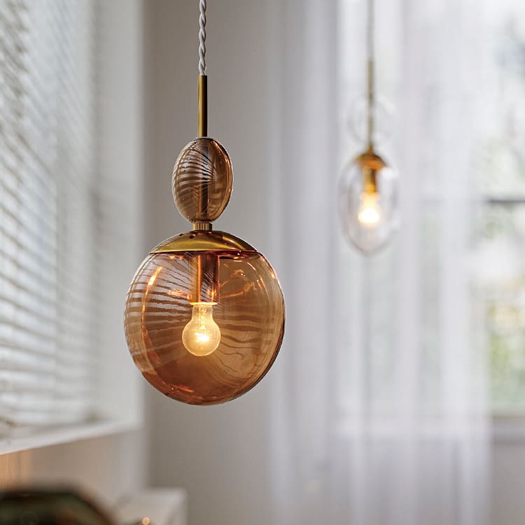 DETAILS 耳元で揺れてきらりと光るアクセサリーのような華やかな「Ellisse(エリッセ)」。 そよ風に釣られて乱反射を繰り返すモビールの軽やかさ。 浮かんでいるような大小2つのガラスは、球体ではなく、眺める角度や方向によってそのフォルムを変化させます。 視覚的なギミックの効いたデザインが感性と好奇心を刺激します。 商品サイズ 本体サイズ / 横幅165×奥行95×高さ1180(mm) シェード / 横幅165×奥行95×高さ310(mm) フランジカバー / 直径90×高さ90(mm) ※コード調整可能 / 470?1180(mm) 材質 スチール、ガラス 重量 1-1.1(kg) カラー ブラウン / クリア 仕様 口金 / E17 60W×1まで対応(電球別売) LED電球対応 長さ調整可 壁スイッチ(点灯→消灯) 備考 製造工程上、ガラス側面等に接合線があります。 お買い物の際の注意事項は、会社概要の「その他の注意点」を必ずご確認ください。 商品紹介 POINT1 他にはない独特なタブレットフォルム 丸みのあるタブレットフォルムをした大小2つのガラスが印象的。 上側のガラスはくるくると回してスタイリングが可能です。 POINT2 飽きの来ない個性的なデザイン 球体ではなく、見る角度によってシルエットが変わる個性的なデザインは海外のインテリアを思わせます。 POINT3 ゴールドカラーのアクセント 明るいゴールドカラーが透明感のあるガラスに華やぎをプラスしています。 ソケットカバーにもガラスの形状に沿うような丸みを持たせています。 POINT4 いろんな角度から、いろんな形を楽しむ 平べったいフォルムならでは光の屈折がユニークなデザインを引き立て、緩やかなカーブが作る丸みは、やさしさ溢れる佇まいで心が落ち着きます。