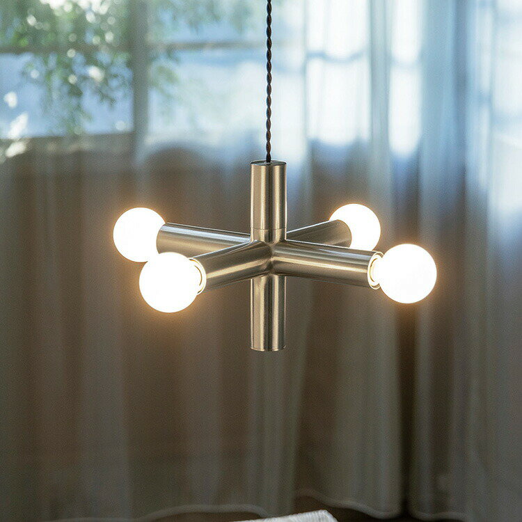 DETAILS・商品詳細 「光が輝く様を輪郭化する」というコンセプトのもと、 ひたすらに簡潔であることを目指しデザインされたペンダントライトです。 滑らかな溶接によって構築された六方向に伸びる円柱が、 電球の光を受け反射によって十字にきらりと光る様子は、空間に輝く1等星さながら。 直線的なシルエットを追求したデザインは、 どの角度から見ても適度な抜け感と奥行きが感じられます。 無骨でありながらミニマルで、凛とした印象を与えます。 商品サイズ 全体/W470×H235×D470(mm) シーリングカバー/Φ75×H90(mm) コード全高/395-1010(mm) 材質 スチール 重量 1.8(kg) カラー シルバー 仕様 口金 / E26 60W×4まで(電球別売) 対応電球の重さ/ 1球80(g)以下 白熱電球、LED電球使用可 壁スイッチ(点灯→消灯) 備考 お買い物の際の注意事項は、会社概要の「その他の注意点」を必ずご確認ください。 商品紹介 POINT1:輪郭が光る構造美 円柱の交差が光を鋭く切り取り、シルエットそのものが輝きを放つ。 シンプルな構造が、空間に強い輪郭と印象を残します。 POINT2:ミニマル × 無骨 装飾を削ぎ落とした鉄の素材感と直線の美。 無骨でありながら、凛とした空気を生む存在感があります。 POINT3:光と構造の十字演出 6方向に伸びたアームが交差し、電球の光を幾何学的に強調。 見る角度で表情を変える、光の“十字”が空間に星のような輝きを添えます。