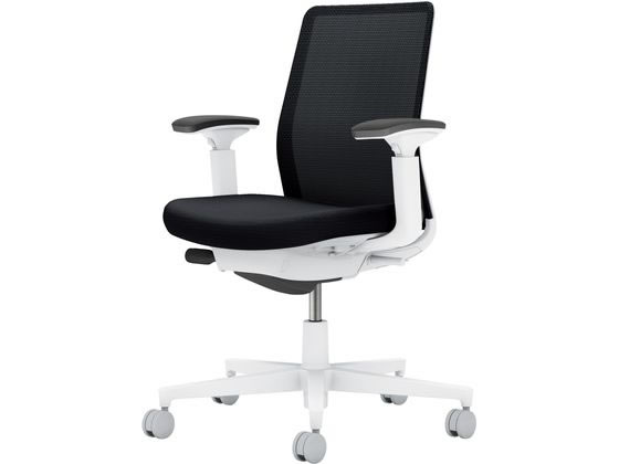 【商品説明】一人ひとりが働きやすい空間へ。 インテリアフレンドリーなタスクチェアー【仕様】●品番:C03−W131U−WB6E6X1●カラー:本体/ホワイトグレー●カラー:座/ブラック、背/ブラック●ランバーサポート:なし●外寸法:幅710×奥行(脚部除く)520×高さ1045〜1135mm●座面寸法:幅500×奥行405〜455mm●肘内寸法:幅455mm●座面高さ:415〜505mm●肘高さ:620〜810mm●材質:背/(背枠)強化ナイロン(メッシュ)ポリエステル弾性メッシュ●材質:座/(座板)PP(張り地)ポリエステル(クッション)モールドウレタン●材質:肘/強化ナイロン、ポリウレタンスキンモールド●材質:脚/強化ナイロン、ポリエステル塗装、キャスター/ポリウレタン巻き(φ60mm)●質量:14.1kg●機能:ガス圧昇降式、オートフィット シンクロロッキング、ロッキング反力 簡易調節機能(5段階)、ロッキング角度 範囲調節機能(4段階・角度: 0、6、13、20°)、座の奥行き調節(ストローク:50mm)、座の高さ調節(ストローク:90mm)、可動肘((水平方向)前後ストローク:73mm、角度:内側23°(上下方向)ストローク:100mm)、ポスチャーサポートシート、ショルダーサポート●生産国:日本●保証期間:外観・表面仕上げ1年、機構部・可動部2年、構造体10年●グリーン購入法適合【備考】※メーカーの都合により、パッケージ・仕様等は予告なく変更になる場合がございます。 【検索用キーワード】コクヨ KOKUYO こくよ もねっと モネット monet モネット背メッシュ可動肘 モネット 背メッシュ 可動肘 オフィスチェア チェア チェアー イス いす 椅子 OAチェア おしゃれ デザイン ブラック C03−W131U−WB6E6X1 C03W131UWB6E6X1 在宅 ソロワーク スモールオフィス ポリウレタン オフィスチェア メッシュチェア R814JHワークスタイルや空間に合わせて、カラーとマテリアルの組み合わせを自由にアレンジ。