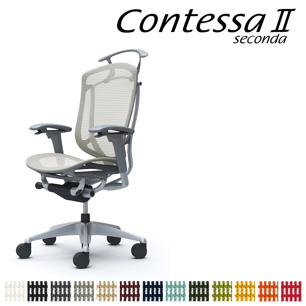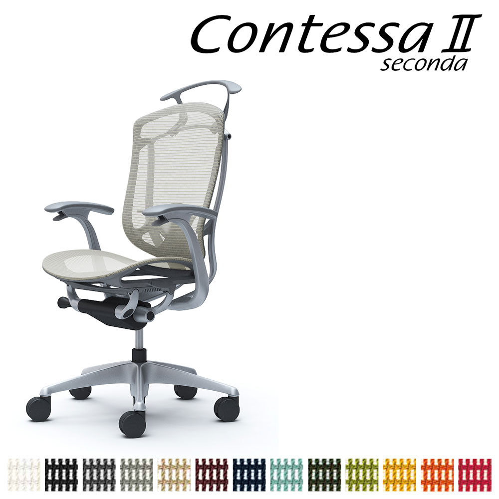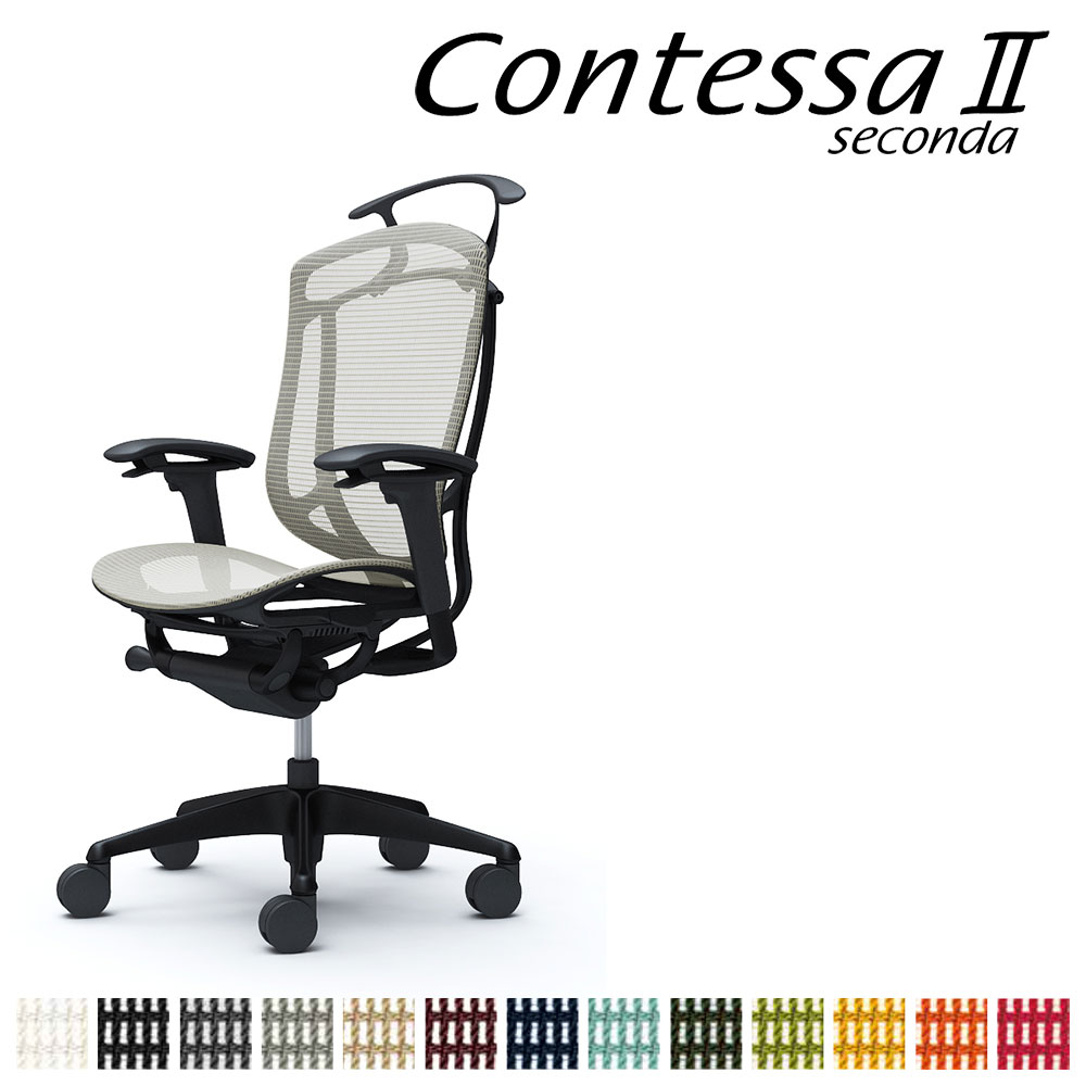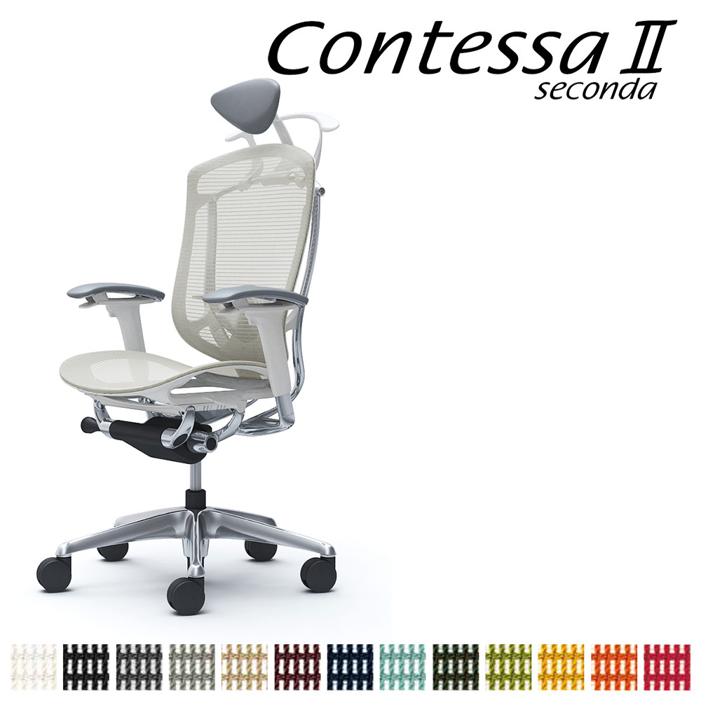 オカムラ コンテッサ セコンダ CC8BBZ CC8BXZ 小型可動ヘッドレスト フレーム:ポリッシュ ボディ:WH 座メッシュ アジャストアーム ランバーサポート付 ハンガー付 298,100 ~