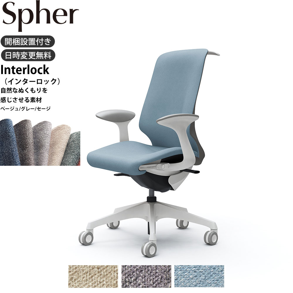 商品詳細 説明 Spher(スフィア)なら座るだけで体格にあわせて背もたれと座面が身体を包み込むように変形し、自然と身体にフィットします。 複雑で多くの調整はもう不要となります。 最低限必要な調整のみで、長時間座っても疲れにくく快適な座り心地を全てのワーカーにお届けします。 ・3Dフィジカルフィットシェル体格に応じて自然に変化してフィットする「3Dフィジカルフィットシェル」を搭載したスフィアは、シーティングと身体の理想的な関係を叶えます。 独自のスリットにより、しなやかさと強度を兼ね備えたインナーシェルを背もたれと座面に採用。 操作なしに、体格に合わせて自然とシェルが変形し、身体をやさしく包み込みます。 「大柄な人」「小柄な人」さまざまな体格にぴったりフィットし、快適な座り心地をお届けします。 ・リクライニングの強弱調節座面右下のダイヤルでリクライニングの強弱調節が行えます。 これまでのダイヤル式よりも、少ない回転数で最弱〜最強の調節が可能です。 ・座面の高さ調節1人ひとりの体格に合わせ、座面の右下にあるレバーの操作により、座面の高さ調節が行なえます。 (ストローク:100mm)・異硬度クッション(座クッションのみ)固さの異なる3 種類のウレタンを一体で成型。 座面の前方は太ももを圧迫しないように柔らかく、後方は臀部をしっかり支えるために硬めのクッションを採用。 ・アンクルチルトリクライニングくるぶしを中心として、背と座がシンクロしてスライドするアンクルチルト?リクライニング。 リクライニング時にも、太腿などを圧迫することなく、自然な姿勢をサポートします。 座面左下のレバーでお好みの角度に固定できます。 (リクライニング角度:20°、リクライニングの固定は255段階です。 ) サイズ幅65×奥60×高さ96.8〜106.8×座面高さ42.3〜52.3cm 脚外径Φ70 重量22kgカラーグレー FXW1、セージ FXW2、ベージュ FXW9 主な材質 背・座インナーシェル/樹脂成型品支基/スチール脚・ハンガー・肘/樹脂成型品キャスター/Φ65ウレタンキャスター仕様 完成品 仕様詳細品番:CT2BFC/肘タイプ:固定肘/背:ハイバック/座タイプ:座面奥行調整あり/ボディカラー:ホワイト/生地:インターロック/ハンガーあり/ホローウレタンキャスター 製造国 日本 付属品 備考 キーワード okamura スフィア spher オフィスシーティング デザイン メイドインジャパン made in japan シンクロリクライニング 国産 SOHO そーほー ソーホー 個人事業主 事務所 コーディネート クリニック 医院 椅子 イス チェア オフィスチェア 高機能 チェア デスクチェア 岡村製作所 オカムラ 日本製 国産 送料 本州、四国は送料無料*九州、北海道、沖縄、離島、淡路島は追加送料がかかります。 配送 配送会社:アートセッティングデリバリー株式会社(家具おまかせ便) 配送ランク:C 開梱、設置、梱包材引き取りまで無料サービスです。 *エレベーターなしの3階以上、吊り上げは別途料金がかかります。 必ず事前にご連絡ください。 *搬入できずに返品となった場合は、往復の送料+再梱包費をご負担いただきます。 搬入経路をご確認ください。 納期情報 買い物かご上に記載 配送日時指定 配送日時の希望は、備考欄にご記入ください。 時間指定は、お届け地域により可能です。 お届けの地域が時間指定可能かどうかは、こちらのページでご確認ください。 オプション オカムラ正規ECパートナーとは、ECサイトにおけるオカムラ製品の販売を行うにあたり、オカムラの認定登録を受けた販売店です。