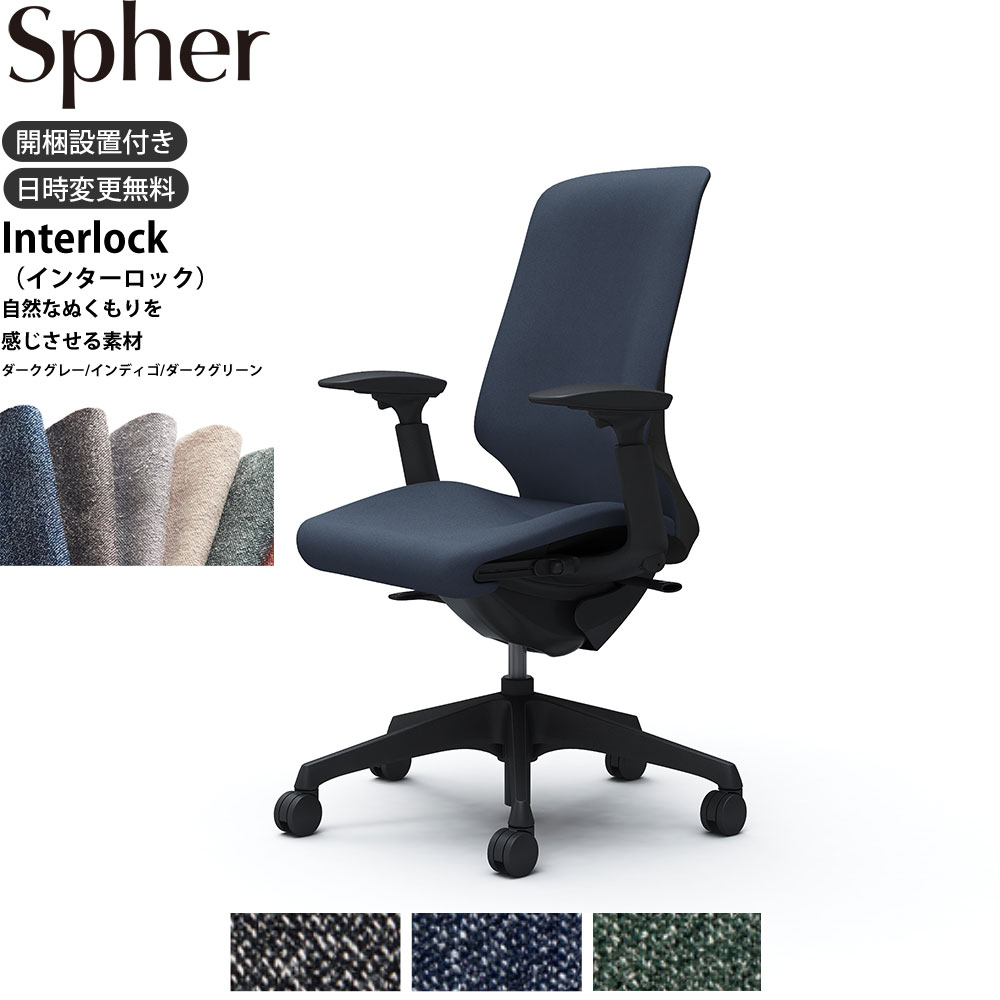 オカムラ スフィアチェア CT4AAA 可動肘 ハイバック 座面奥行調整あり ボディ:ブラック 生地:インターロック ナイロンキャスター 110,880 ~