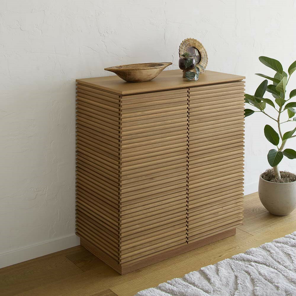 丁寧に組み上げた横格子デザイン。 幅わずか1cmに切り出した天然木を、1本1本丹念に磨いて塗装。 サイドまで横目が揃う端正な仕上げに。 ふわりと灯るLEDが間接照明に。 天板背面にLEDライトを搭載。 やわらかな光が壁面に広がり、リビング空間を美しく演出します。 日本品質に管理された工場で丁寧に作られています100%日本向け、日本人が管理する工場で1点1点丁寧に仕上げています。 ページ下部に画像の説明がございます。 一部別売りの商品もございますので、説明文ご確認のうえご注文ください。 >画像の説明はこちら<仕様・サイズ■色:(ア)ダークブラウン (イ)ナチュラル■サイズ:幅78.5cm奥行44.5cm高さ85.5cm、引き出し奥行32cm■素材:前面・側面…天然木化粧板((ア)アルダー天然木 (イ)オーク天然木)+無垢格子(ウレタン塗装)、天板…天然木化粧合板(ウレタン塗装)■天板耐荷重30kg■可動棚板4枚付き■LEDライト付き■コード長さ約150cm■中国製【送料マーク:D】 梱包サイズが大きいため、お部屋まで搬入できない場合があります。 ご注文の際は、必ず事前に梱包サイズと設置場所までの搬入導線(通路の幅・高さ等)をご確認ください。 >詳細な説明はこちら<この商品の配送料は5000円(税込)です。 ※北海道・九州・沖縄は地域特別配送料がかかります。 この商品は下記のサービスが選択できます。 ※組み立て・開梱サービスは日時指定ができません。 お届け前に配送所より配達日時のご連絡をさせていただきます。 ※別途配送料金がかかります。 有料開梱サービスについて 画像の説明(イ)ナチュラル 前面と側面が揃ったデザインコーディネート例(イ)ナチュラル 商品は一番左です 幅1cmに切り出した天然木を丁寧に手作業で1本ずつ取り付けています。 似たような商品は2cm前後のものが多く、見た目に大きく差がでます。 コーディネート例(イ)ナチュラル 商品は一番左ですふわりと灯るLEDが間接照明に。 天板背面にLEDライトを搭載。 やわらかな光が壁面に広がり、リビング空間を美しく演出します。 (イ)ナチュラル(ア)ダークブラウン(ア)ダークブラウン 側面との繋がりを保つため、扉の開き方は一般的な開き方と異なります(イ)ナチュラルLEDスイッチしっかりとした金属製のダボで支えます(イ)ナチュラル 側面(イ)ナチュラル 背面(イ)ナチュラル(ア)ダークブラウンLED部分があるので壁と若干の隙間ができます 【クーポン10%OFF 1/11迄】 天然木ストライプシリーズ サイドボード 幅78.5cm キャビネット リビングボード リビング収納 H93302 99,900 ~